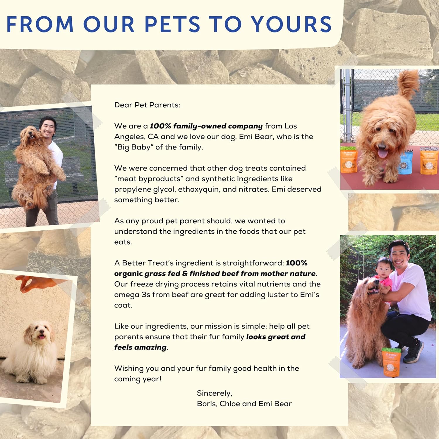- SUSTAINABLY SOURCED AND MADE IN THE USA: Our treats are sustainably sourced, organic, and human grade. They are made in the US at our organic certified facility to ensure human grade quality. Freeze drying is shown to be the best way to preserve natural nutrients with over 61% more nutrients retained relative to dehydration or cooking. Our mission is to ensure only the freshest, healthiest, and best quality ingredients to make A BETTER TREAT