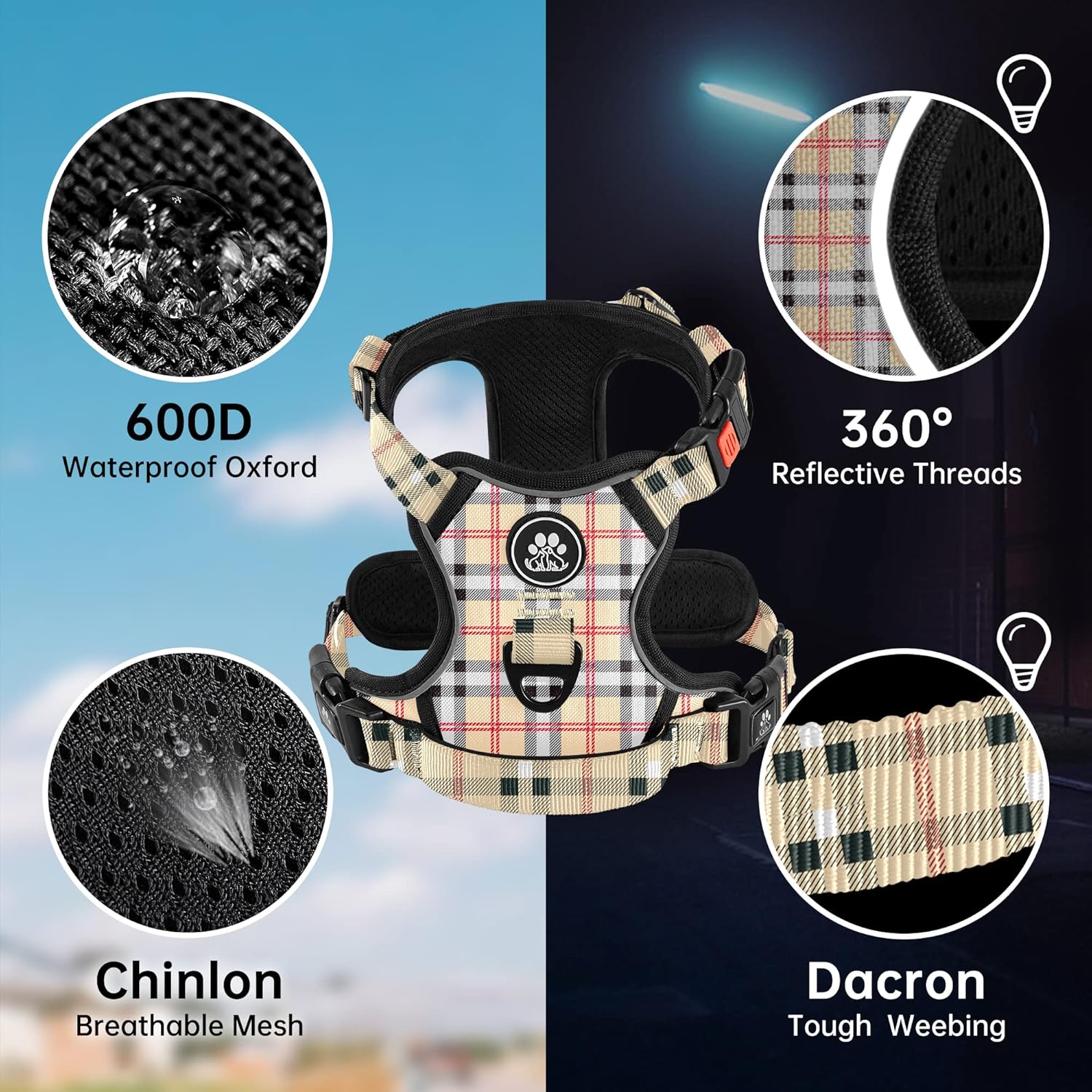 - 【SELECTED ACCESSORIES】 Our no pull harness includes 1 professional dog leash & 1 retractable seatbelt & 1 storage strap, which makes walking dogs a pleasure. We provide several size harnesses for small dogs to large dogs, more details please refer to the sizing chart