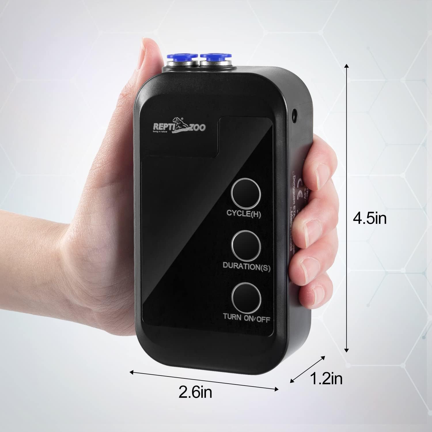 - 【Intelligent Circulation Reptile Misting System】With smart timing function, regular cycle spray can be set to humidify the terrarium. No worry about your reptiles when you are going out for days.And the operation is simple.
