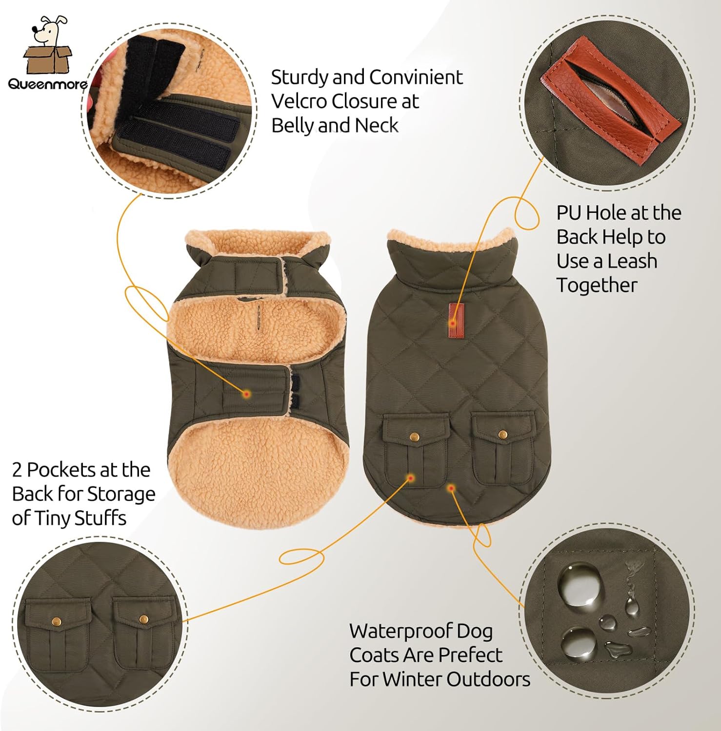 - USE THE LEASH TOGETHER WITH THE DOG COAT - We add a stylish brown PU hole at the back of the dog jacket and so you can use the leash together with the winter dog jacket to keep your pet always close at you.
