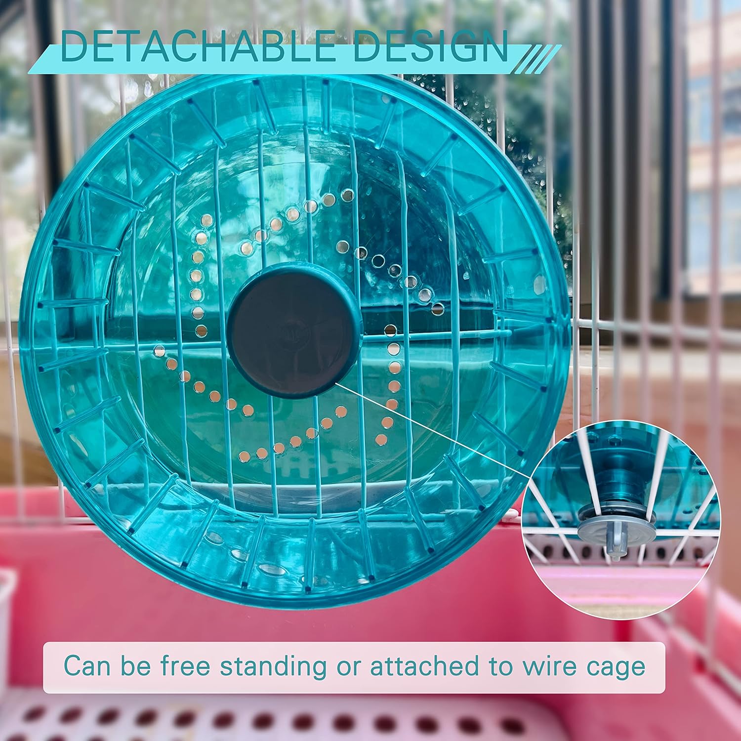 - STURDY - You can complete the installation simply by tightening the wheels and inserting the base without complicated process, placed directly on the flat floor of your pet's home. The wheel can be used either free-standing, with the supplied stand, or be attached to wire hamster homes.