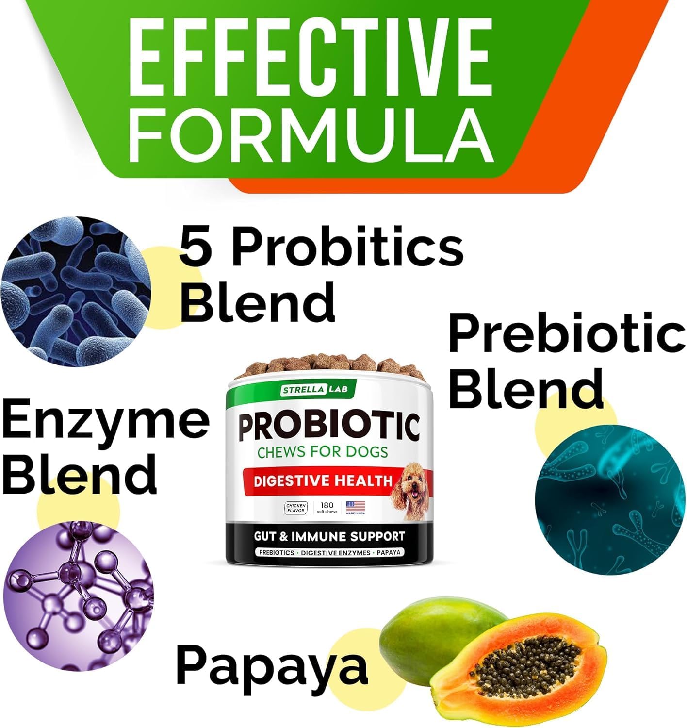 - Powered by Nature – Made with naturally derived elements like papaya and enzymes, our chews deliver real benefits using a simple, thoughtful formula you can feel good about.