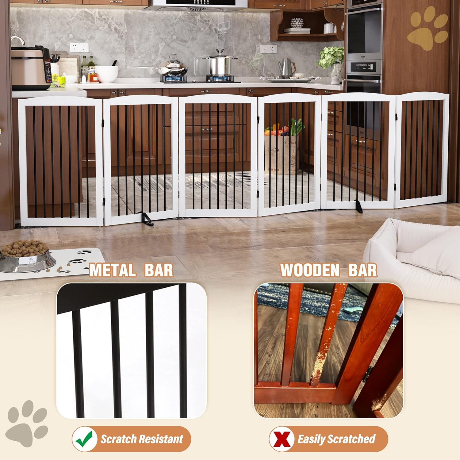 - 【NO ASSEMBLY REQUIRED】: The free standing dog gate is fully assembled and ready to use! Unfold the indoor dog fence and place it anywhere as a pet fence, room divider. Moreover, don't worry about the floor being scratched as the Non-slip rubber pads keep protecting your floor.
