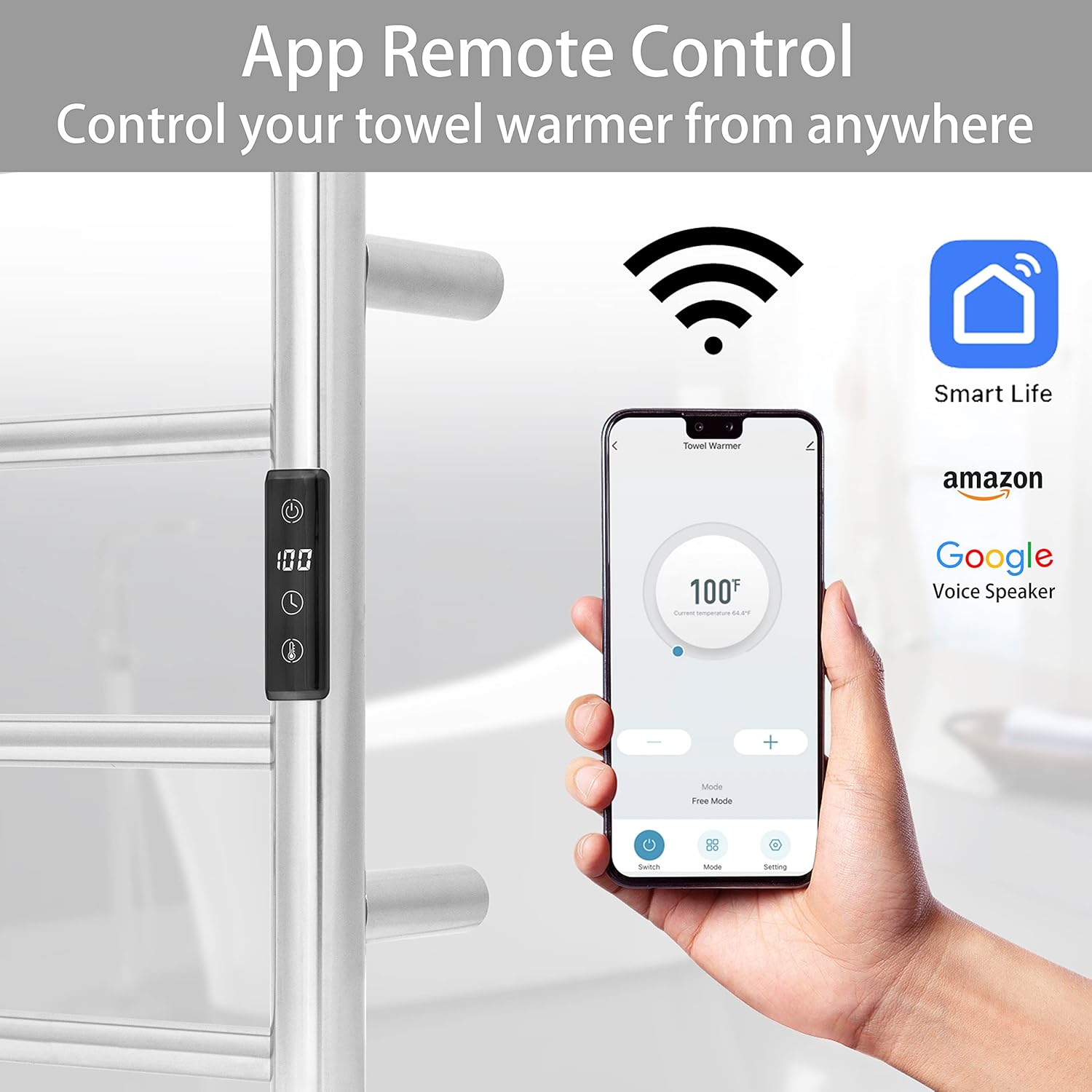 • [APP CONTROL & SMART SCHEDULING]: Turn the towel warmer on or off from anywhere in the world with your smartphone using the SmartLife app. Set the towel warmer to automatically turn on/off as needed.