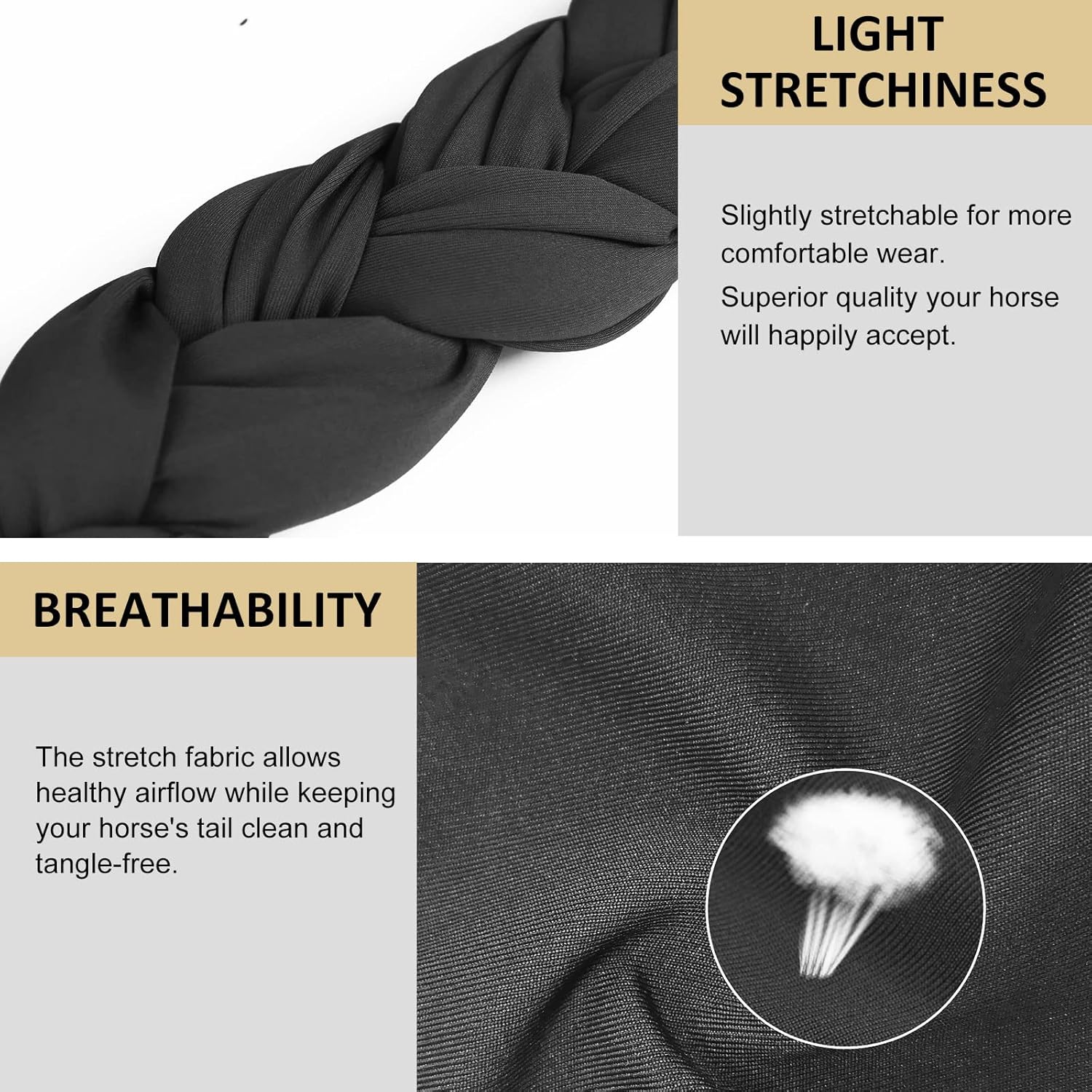 - Stretchy Fabrics & Lightweight: Made of premium-quality stretchy fabrics that wear comfortably and will not hurt your horse's ponytail.