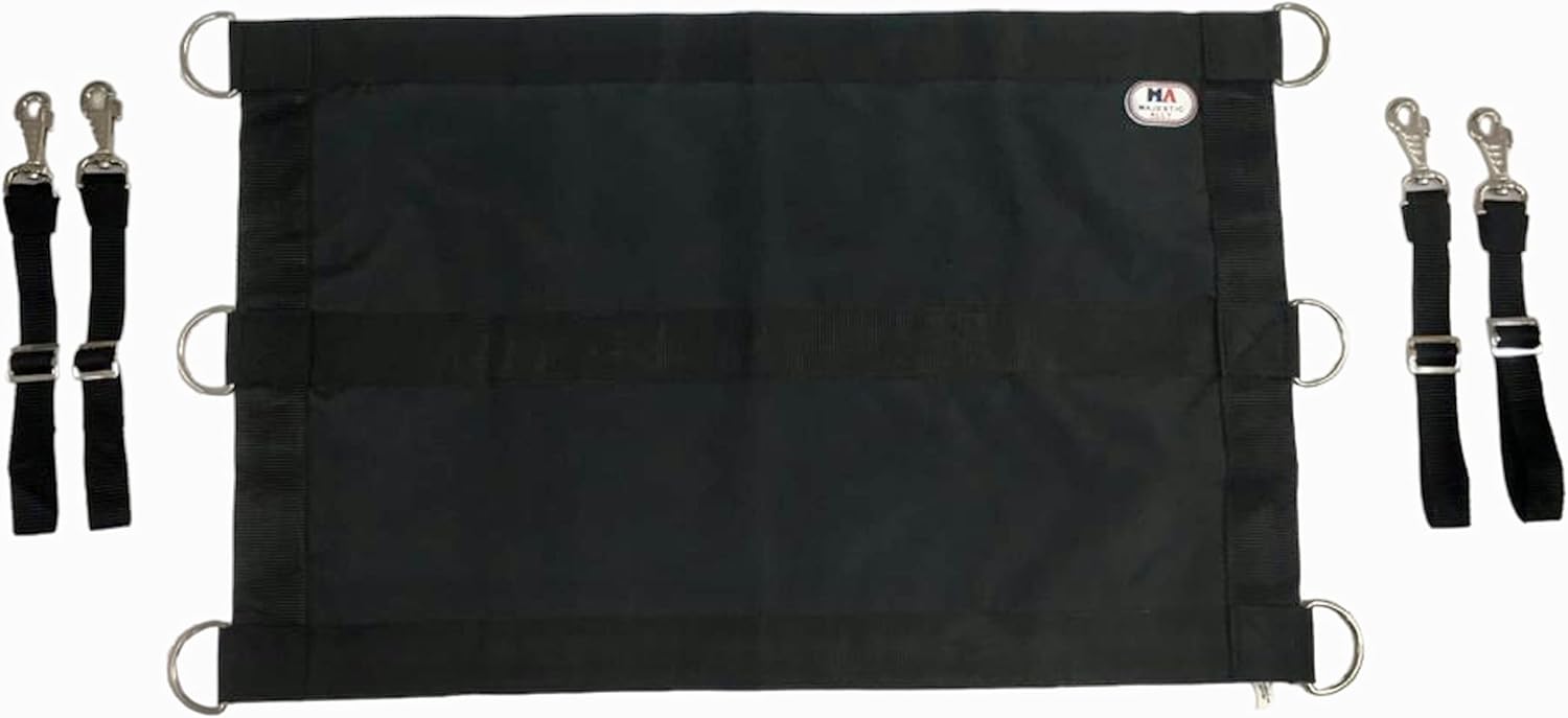 Majestic Ally 1200D 29"x19" Horse Stall Guard with Replaceable and Adjustable Length Straps and Replaceable Hardware (Black Black)