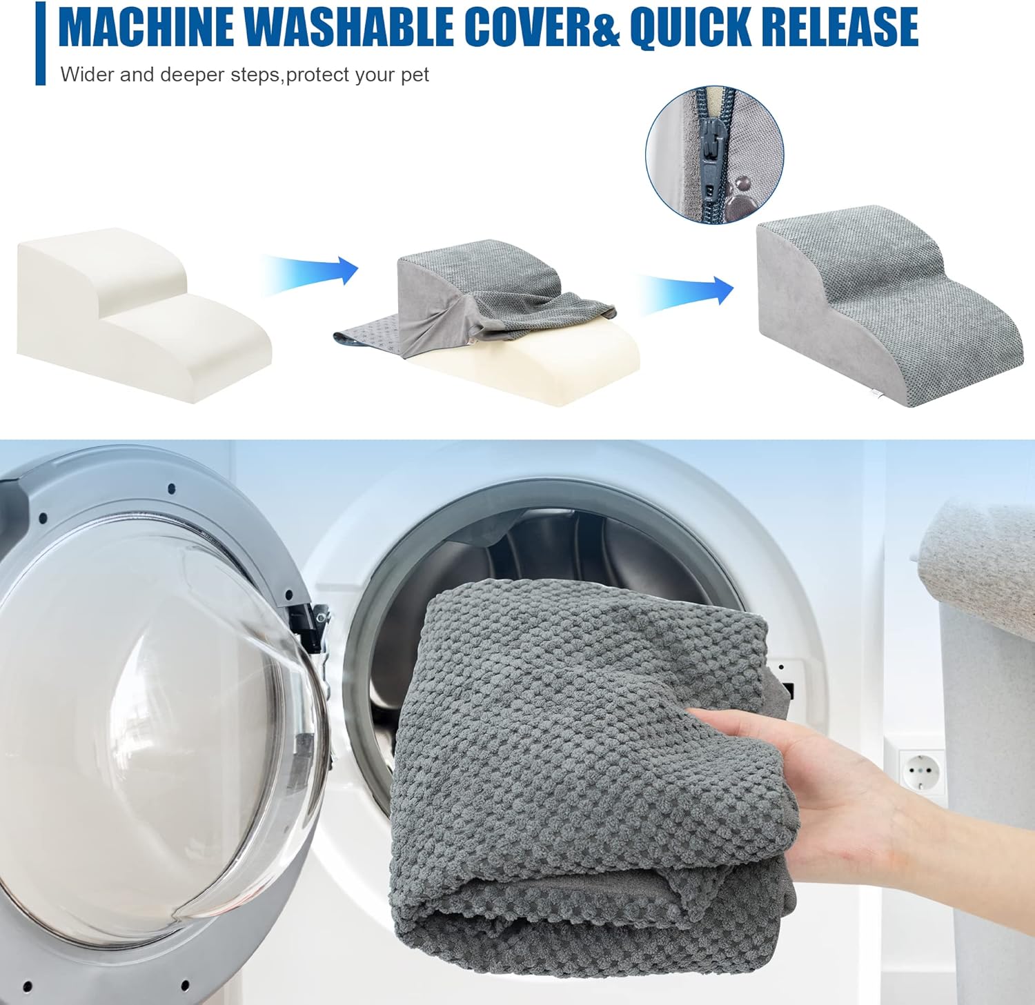 - Easy to Install and Clean: This pet step can be assembled and disassembled through simple steps. It is easy to clean. You can wash the removed cover by machine to keep the pet step clean and tidy