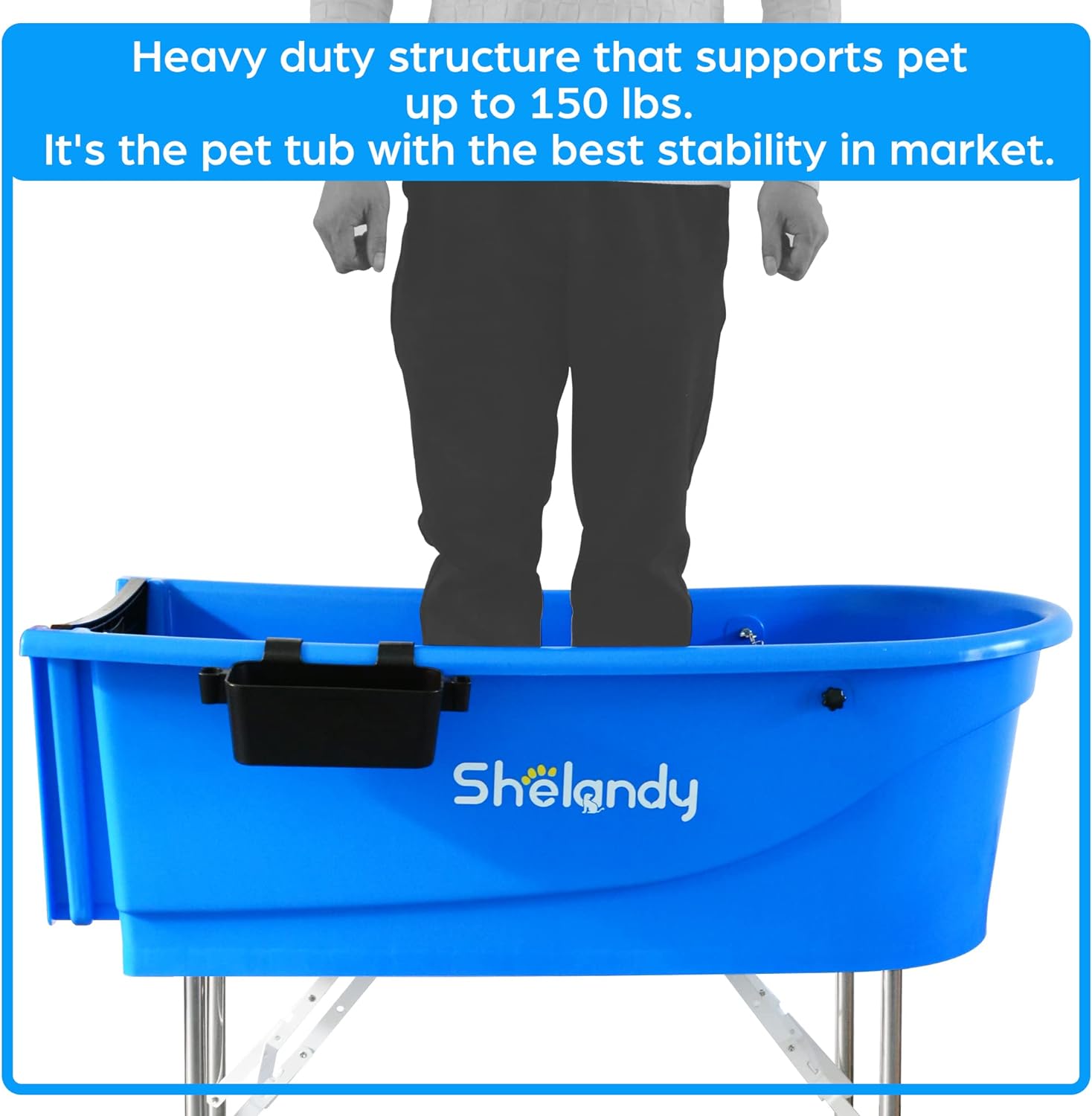 - Heavy duty structure that supports pet up to 150 lbs. It's The pet tub with the best stability in market