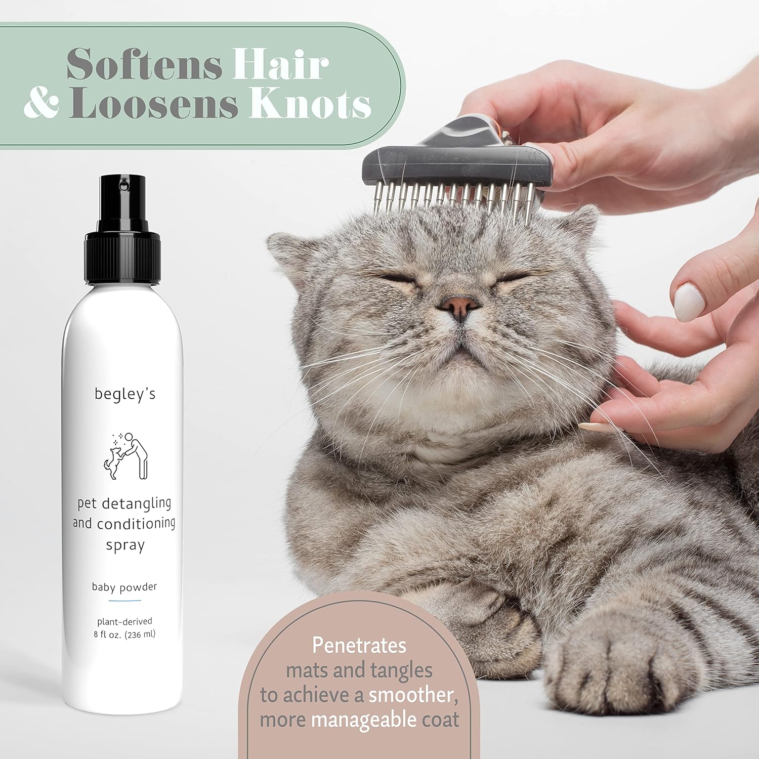 - Prevents Future Tangles — Fighting and pulling at knots makes brushing a dreaded activity. Using a cat and dog conditioner detangler reduces the force required to evenly comb through your pet's hair. Give their coat a touch-up between brushings and turn grooming into a luxurious spa routine with this cat and dog detangling spray