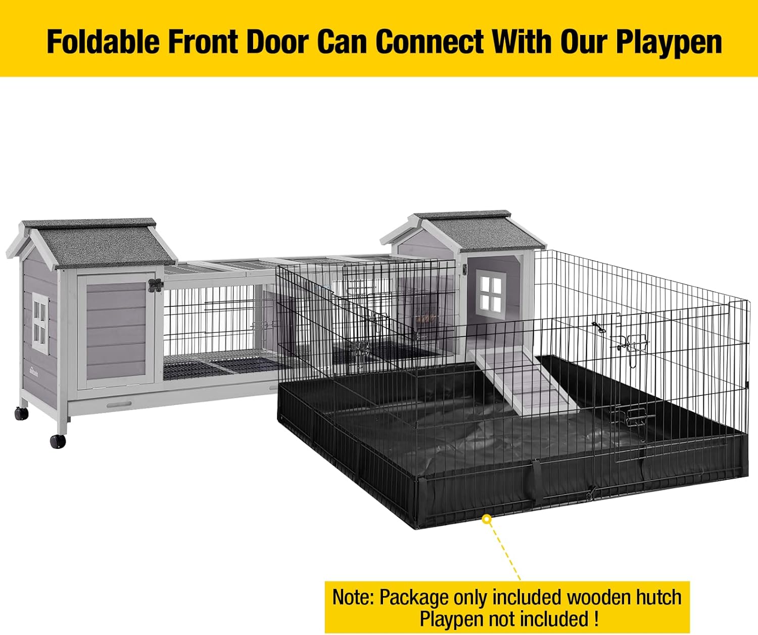 - 10.4 ft² Spacious Living Area: Rabbit hutch with two sleeping house and run, 80.12" from end to end, provides a far and long distance to hop