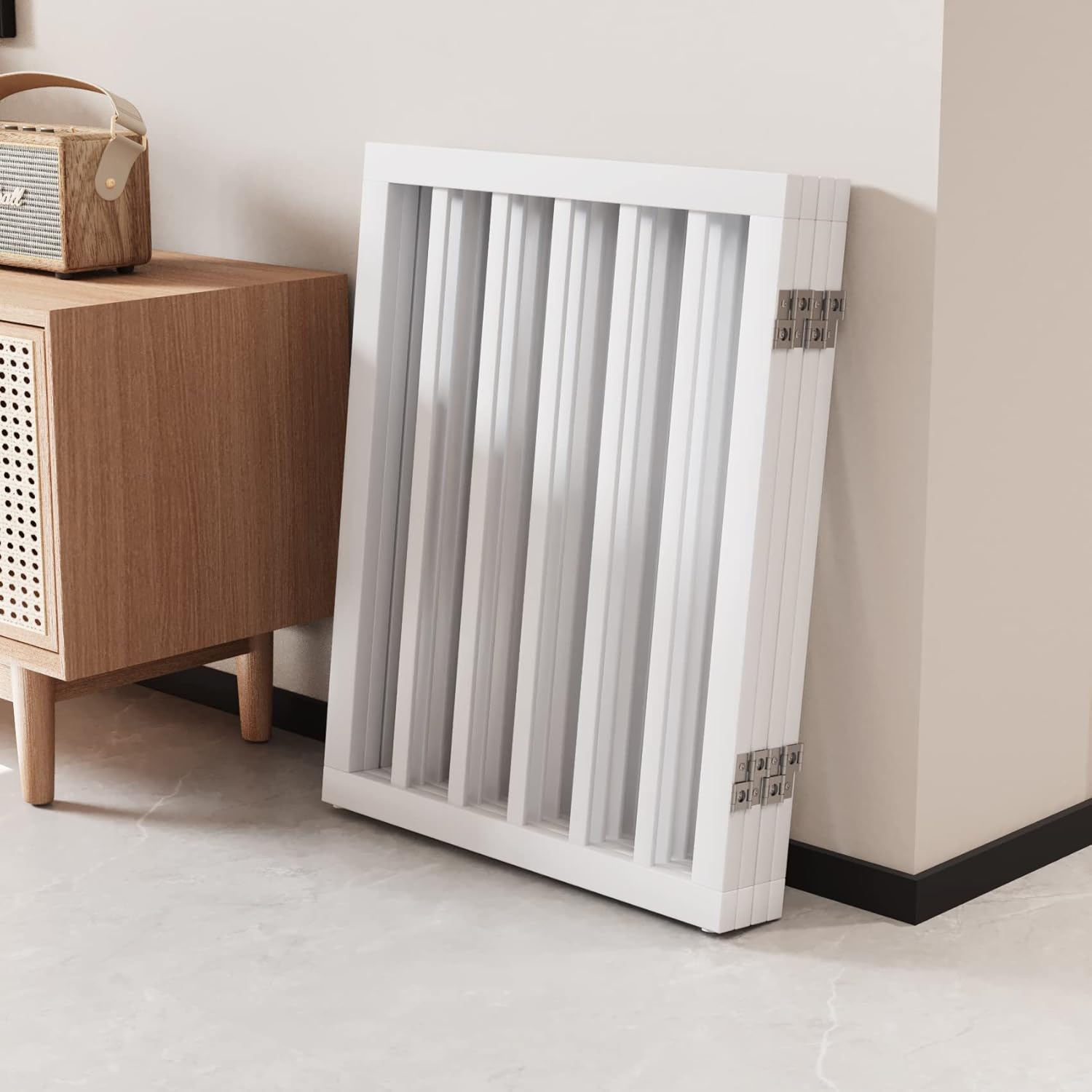 - This gates for dogs indoor easily folds and conveniently fit in the closet, after doors. 24inch tall dog gates only to barricade small dogs, medium dogs, puppy, or cat, not for large dog