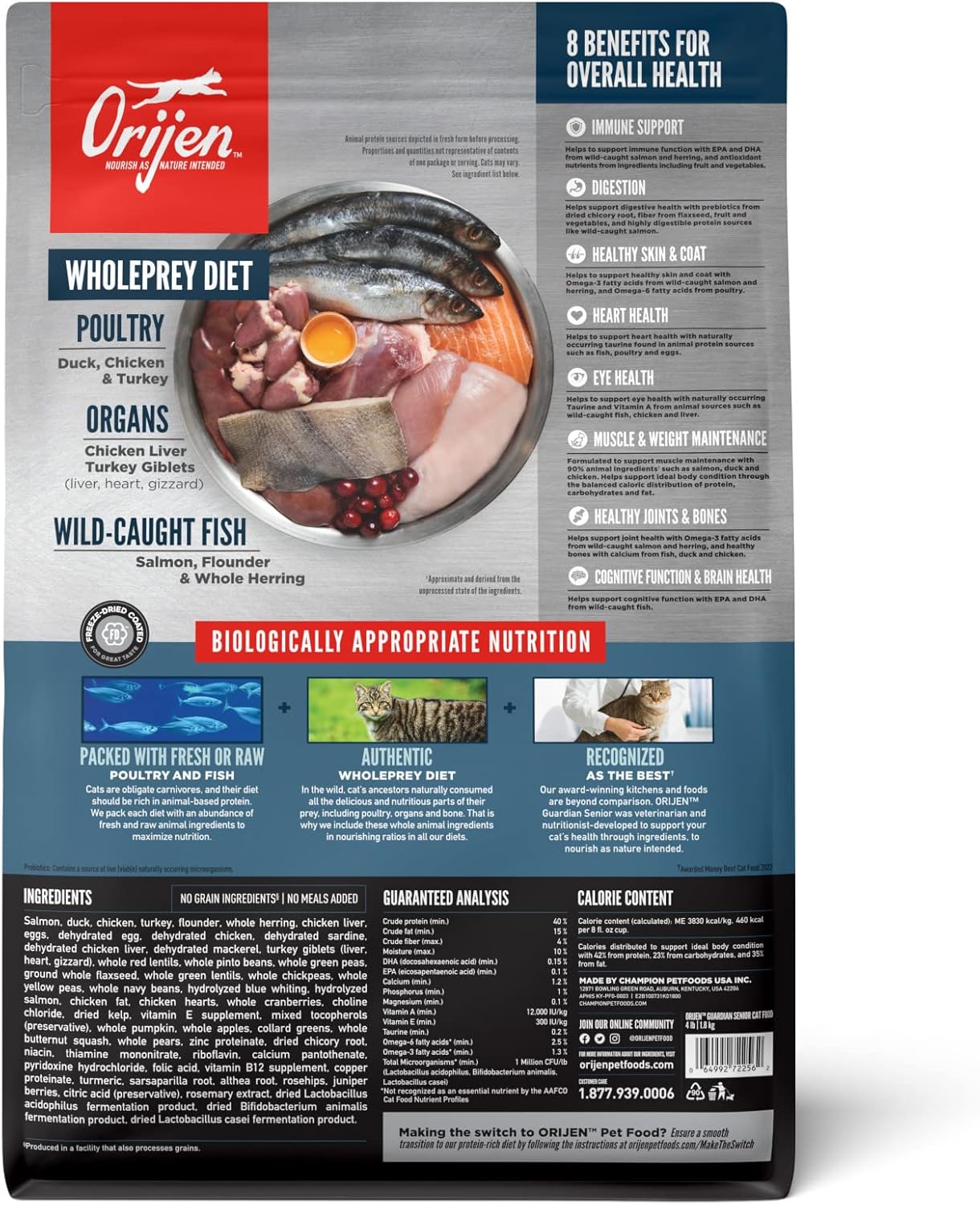 - One (1) 4 lb bag of ORIJEN Grain Free* GUARDIAN SENIOR Dry Cat Food
