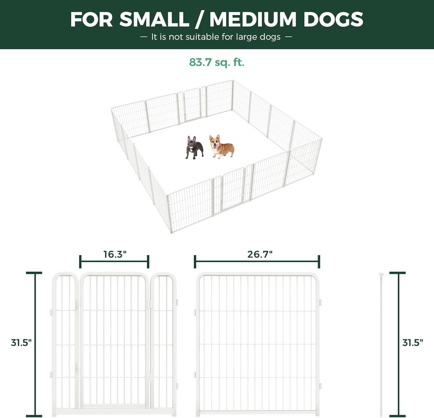 FXW Homeplus Unleashed Indoor Dog Playpen - Stress-Free and Safe Play, Heavy Duty 32 Inch 16 Wire Panels Dog Pen for Small and Medium Dogs, White│Patented