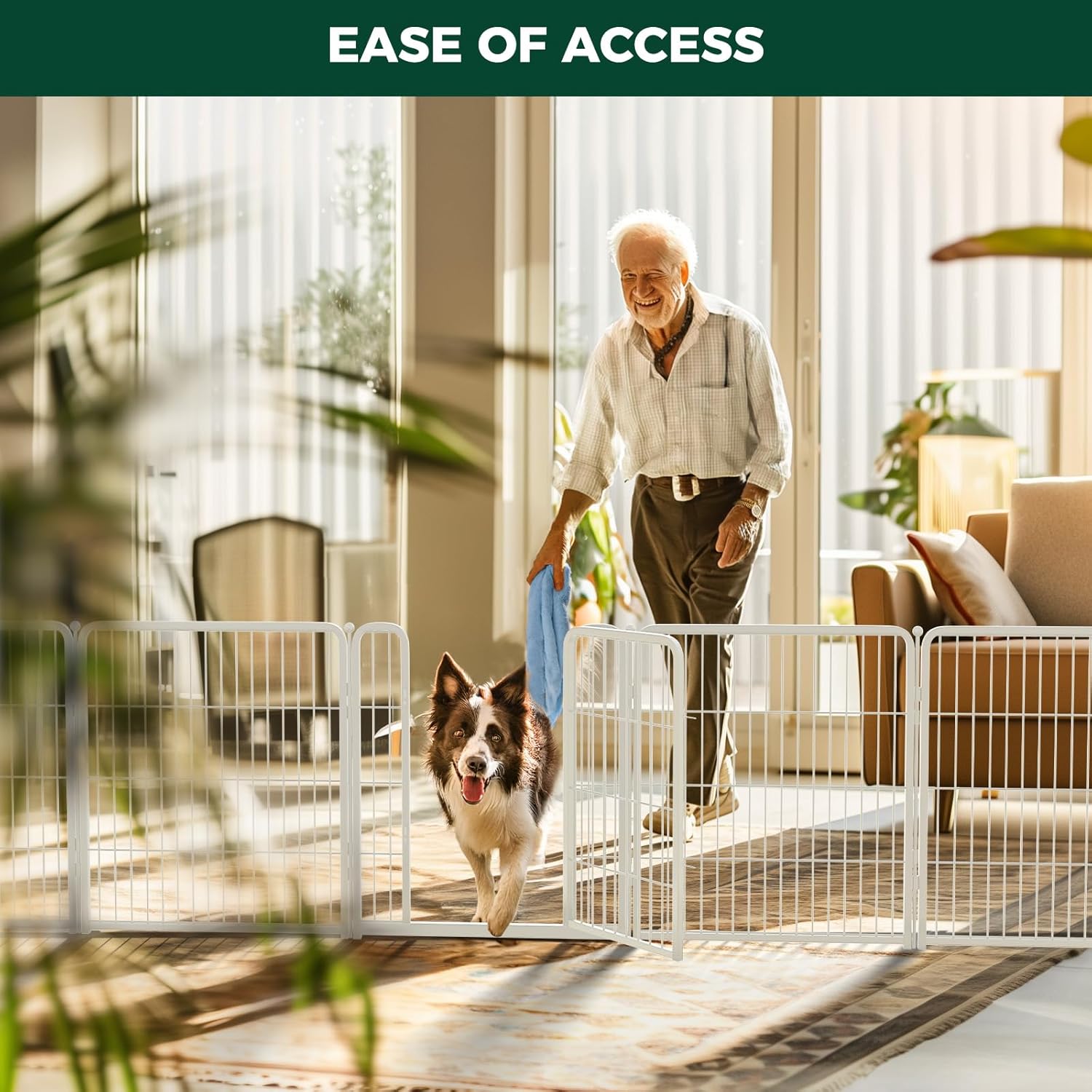 • Ease of Access: Threshold-free gate allows easy walk-in cleaning for humans and worry-free running for dogs.