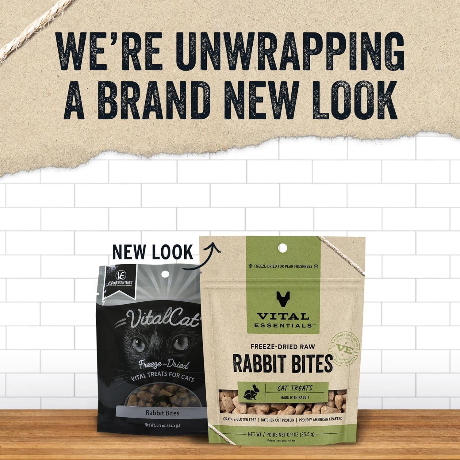 - FREEZE-DRIED RAW RABBIT CAT TREAT: Vital Essentials Freeze Dried Cat Treats pack more protein than industry standard into every bite to deliver the peak vitality your dog deserves. Our natural freeze-dried raw cat treats are made from responsibly sourced, premium butcher cut rabbit.
