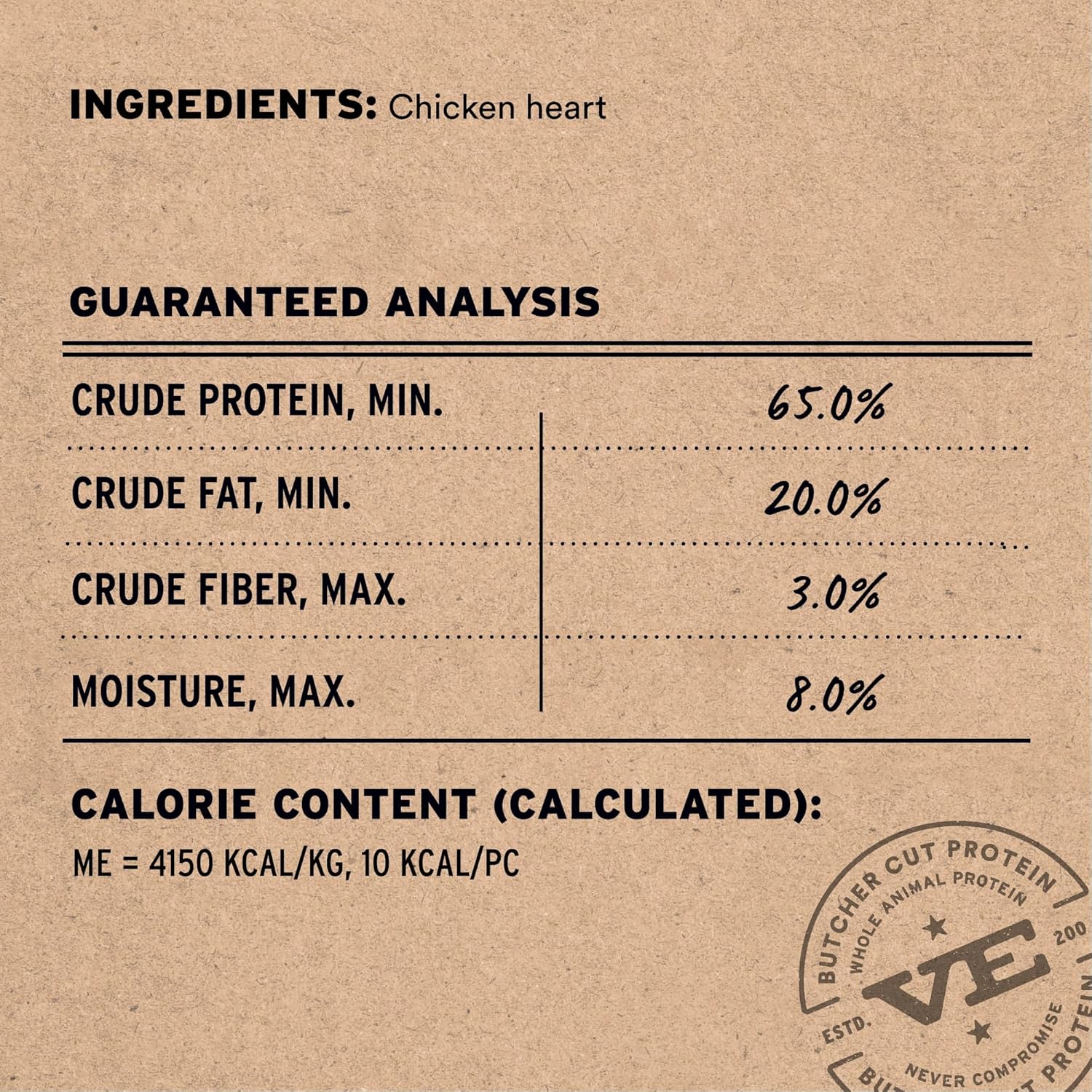 - FREEZE-DRIED RAW CHICKEN HEARTS CAT TREAT: Vital Essentials Freeze Dried Cat Treats pack more protein than industry standard into every bite to deliver the peak vitality your dog deserves. Our natural freeze-dried raw cat treats are made from responsibly sourced, premium butcher cut chicken hearts.