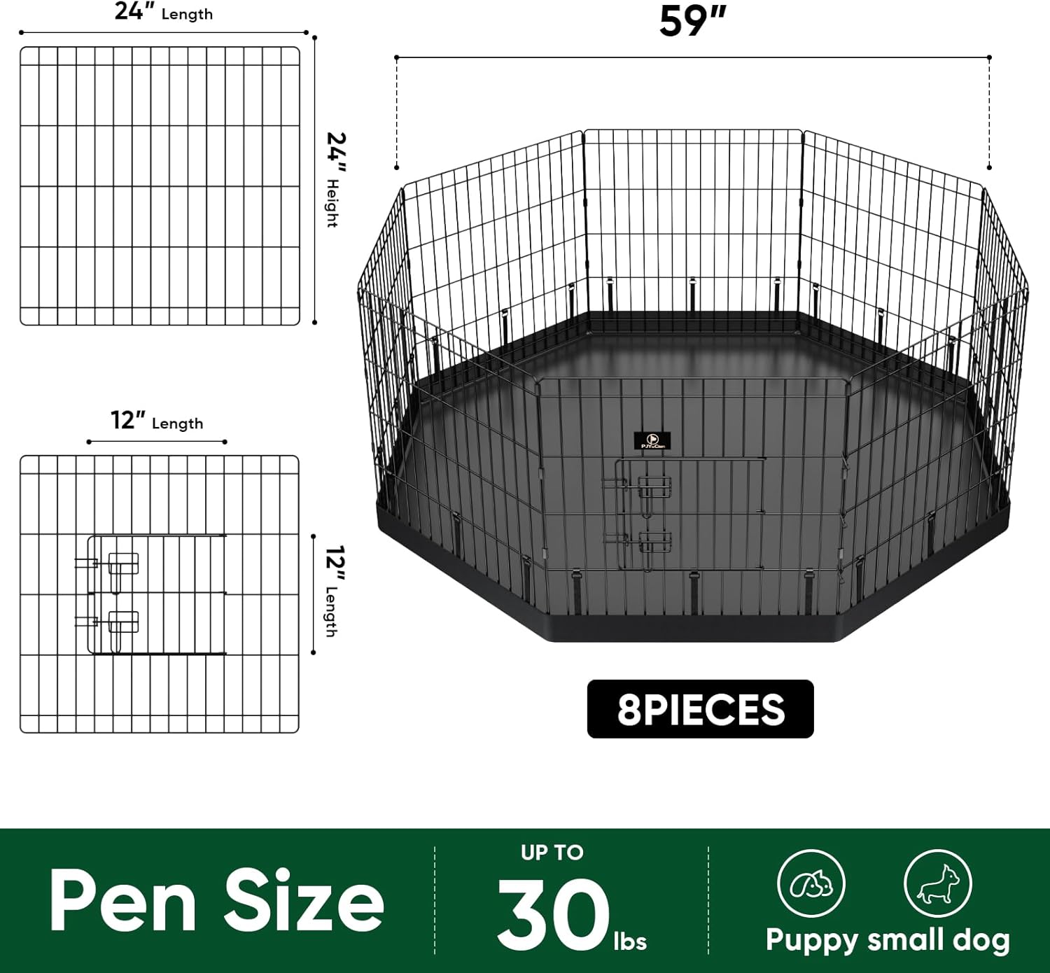 - 24" H x 24" W Foldable Puppy Playpen This Puppy Playpen consists of 8 connected panels (each panel measures 24" H x 24" W), making it easy to set up and take down. The foldable design allows for convenient storage and transport. No tools are required, and it can be quickly assembled by one person. Better for puppy or small pet.