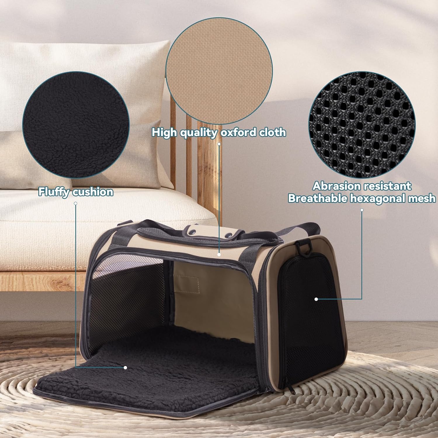 - [Dog Carrier Airline Approved] With an airline-approved design, Conforms to the under-seat dimensions of most airlines, you can take your pet to go to everywhere. The pet carrier for cat comes with an extendable cozy fleece pet mat, which offers extra sleeping space for your traveling pet.