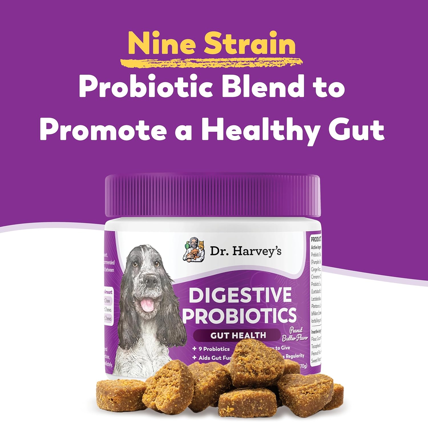 - Digestive probiotics soft chews for dogs feature a seven-strain probiotic blend to promote good gut health and maintain solid stools, making them a convenient and effective way to support your pup’s digestive system