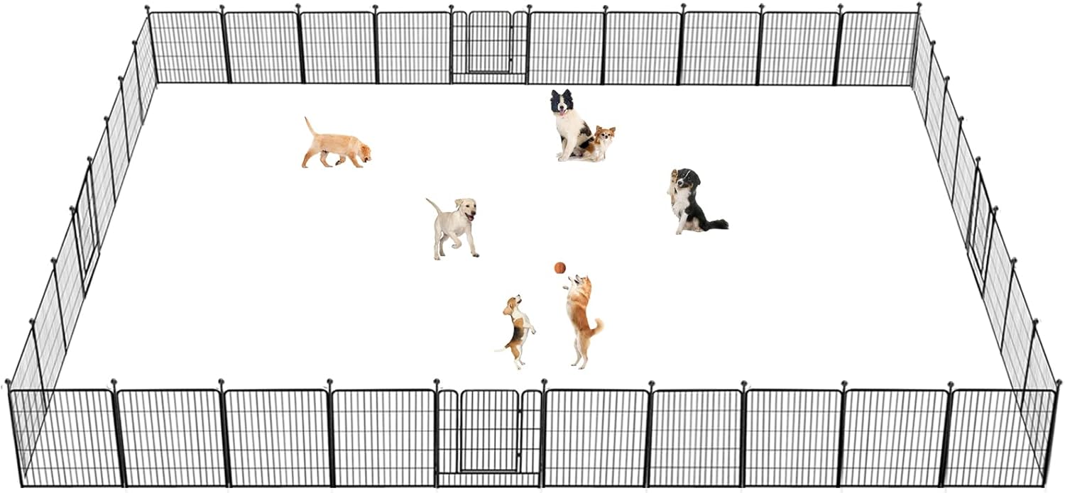 - 【Portable & Foldable】: Our dog pens outside can be disassembled into a flat and compact size for space-saving storage and easy carrying. That means you can take the outdoor dog cage to provide a safe space for your pets to any where at any time. Great fence for dogs outside for travel, RV camping, or play in the yard. Enjoy more fun time with your pet