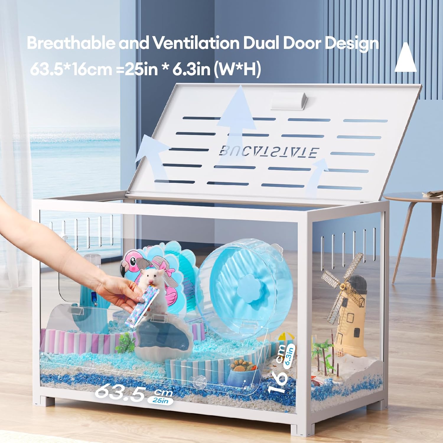 - 【Metal Structure & Chew Proof】We designed a metal frame combined with high-quality acrylic boards that achieve the structure stability of the cage, effectively preventing hamsters chew proof and escape-proof. 4 view windows that allow you to see your pets frolicking around in an environment designed to simulate natural conditionals from 360 angles. Water and rust-resistant that’s fairly easy to clean.