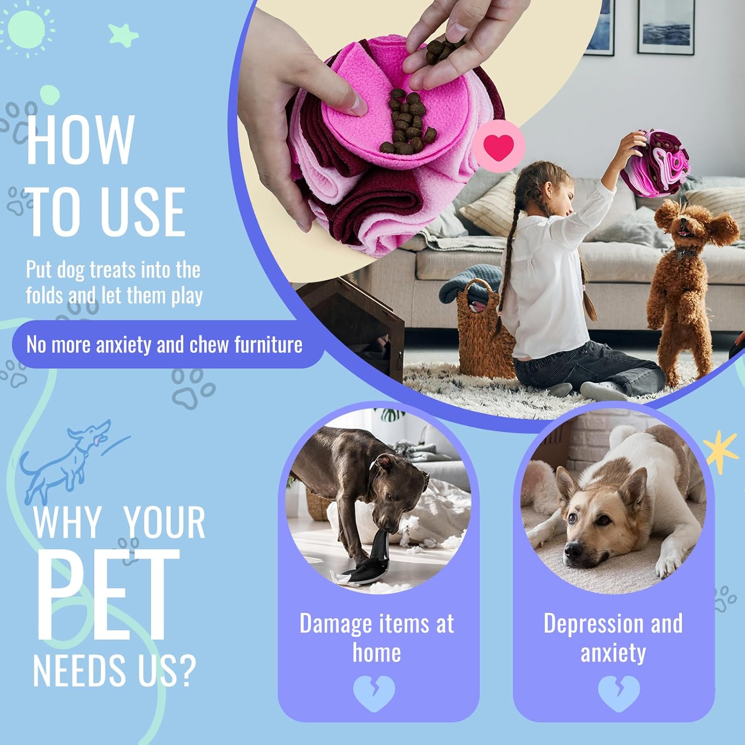• 🐶Accompany your pets 🐶 We are a family, while your pets accompany you, our Larimuer snuffle balls also accompany them. Our snuff balls are made of high-quality, odorless polar fleece material, taking care of your pet's health.
