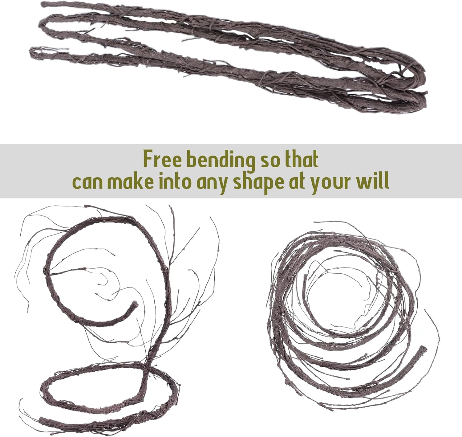 - MATERIAL: Iron wire inside makes the tree vine can be bent arbitrarily. Paper and plastic surface highly simulated the real tree bark and real touch