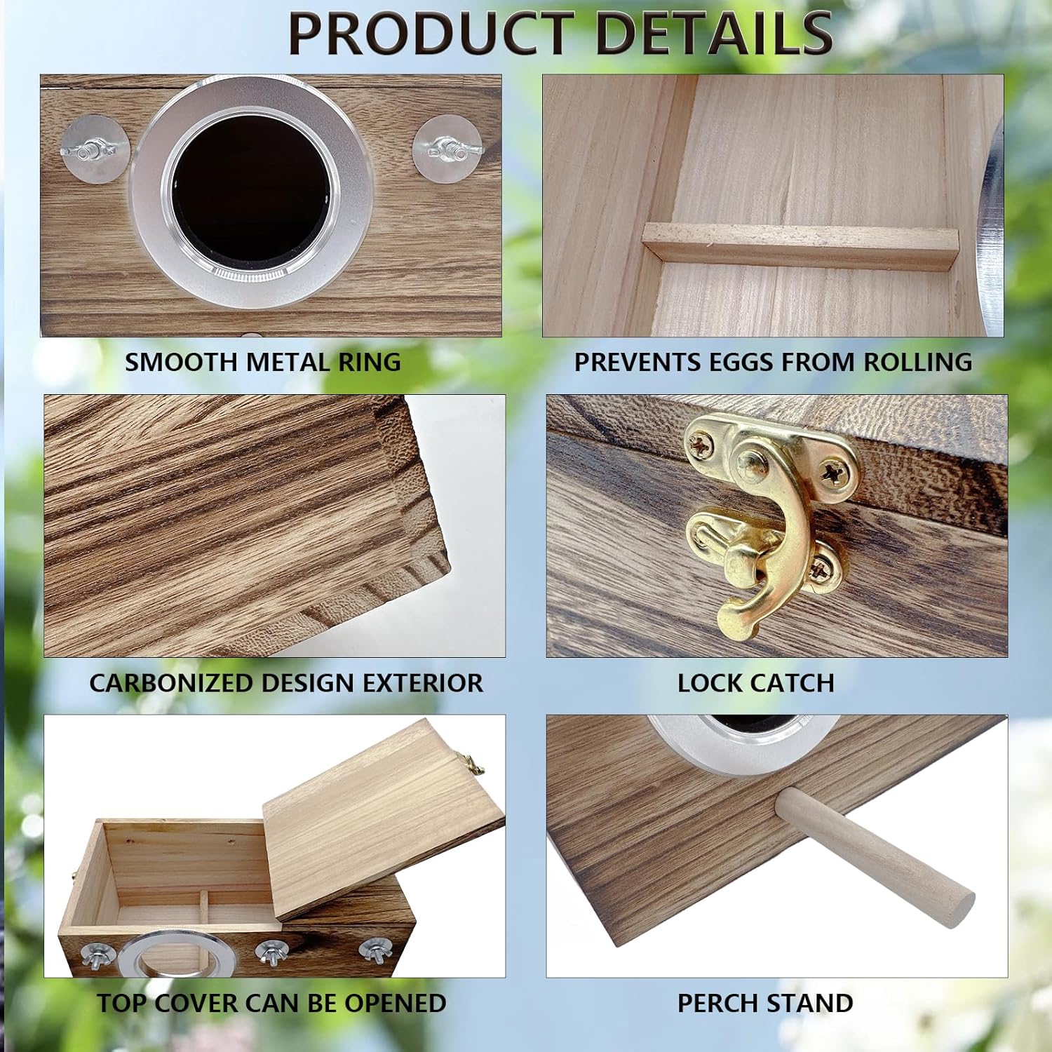 - 【Encourages Natural Breeding and Nesting】 Our bird breeding box helps birds develop nest-building skills and enhances emotional communication between couples, making it an ideal place for bird nesting and breeding. It encourages natural breeding and nesting behavior in birds, providing a comfortable and warm nest for your pet birds. A comfortable and safe nesting place gives birds a sense of security and facilitates the hatching of chicks.