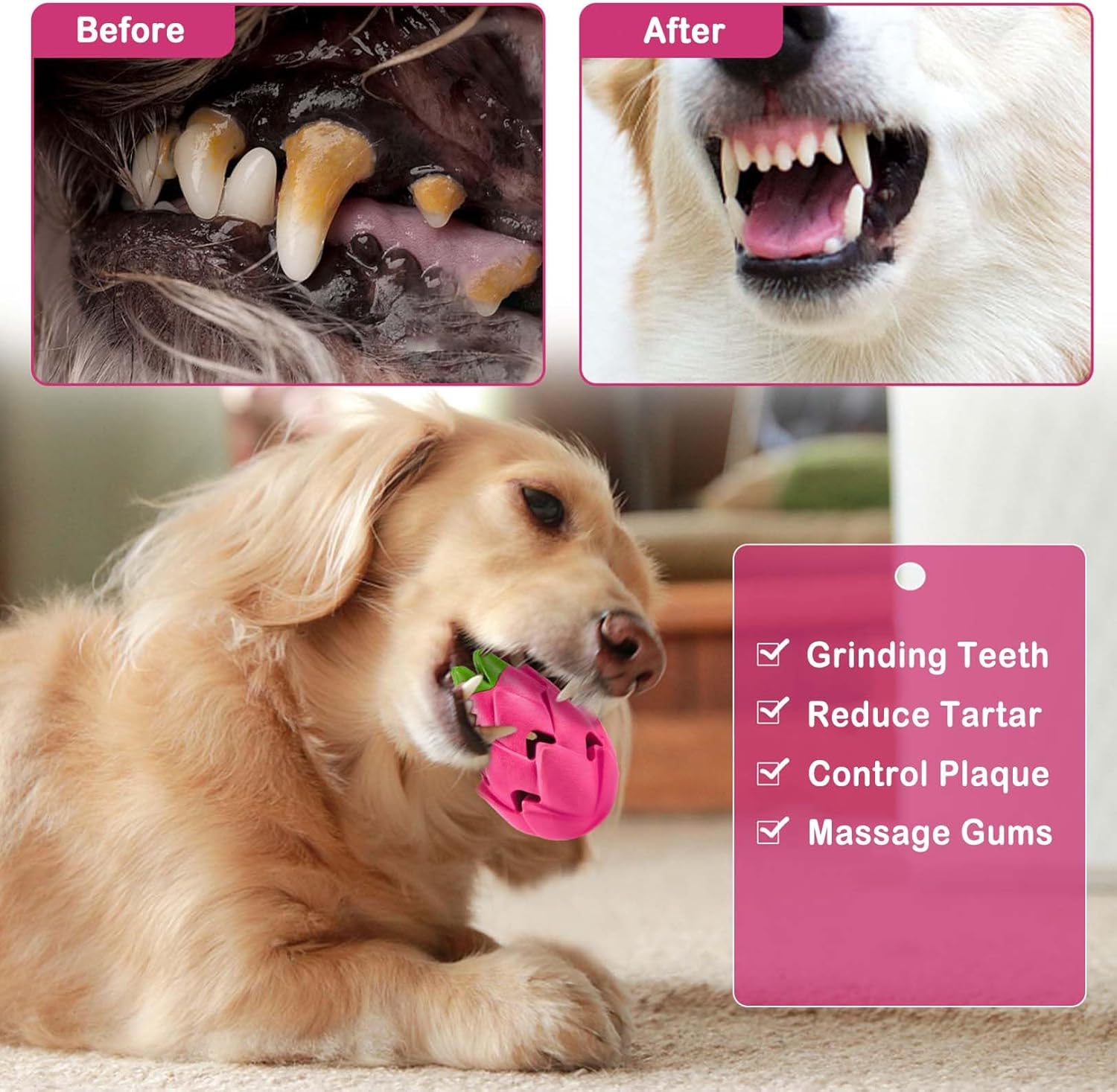 - 🐕 Promotes Dental Health: Our hollow pitaya design with its uneven surface and side holes, can apply dog toothpaste or peanut butter on it, attracting your dog's interest and helping them clean teeth while chewing. Promote better dental hygiene.