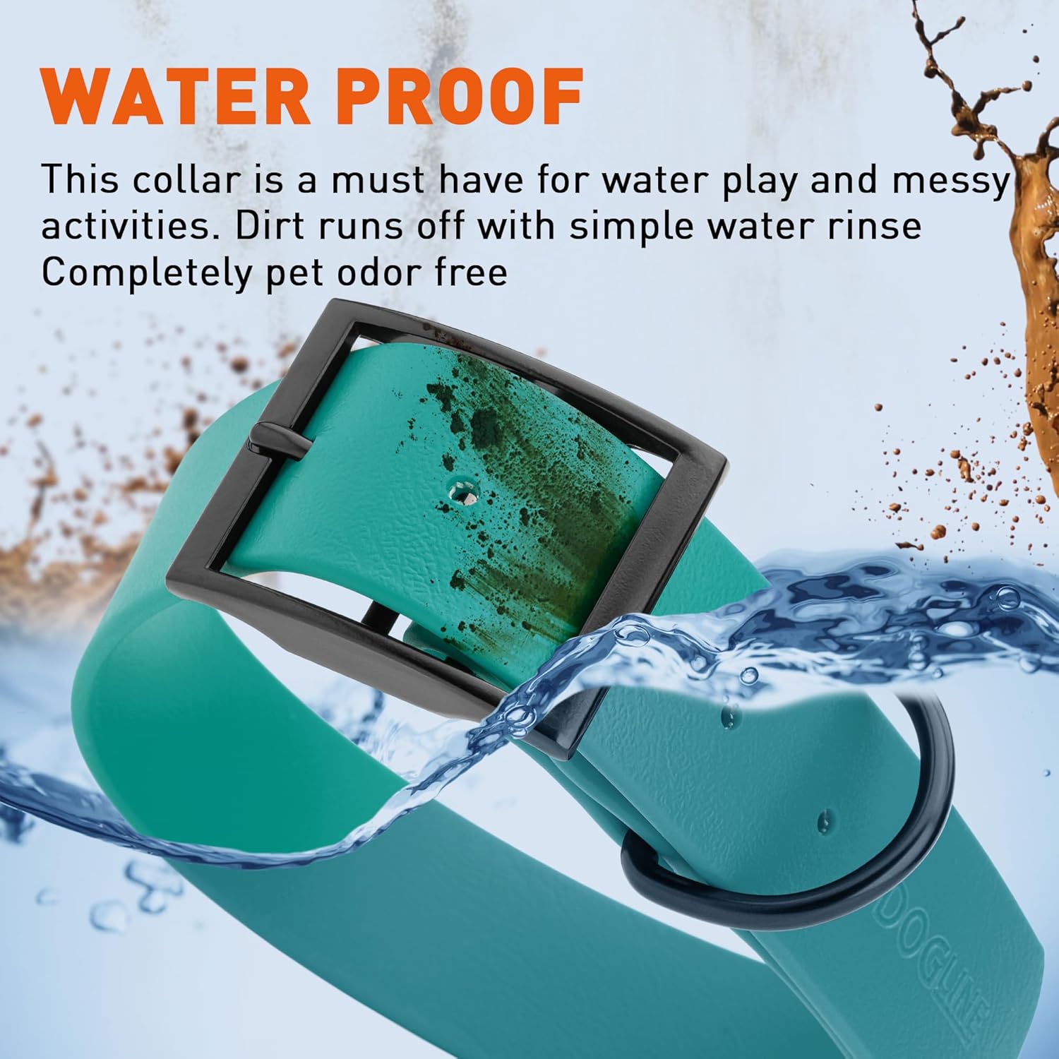 • Free Your Dog to romp in puddles and retrieve from lakes with the Dogline Biothane Waterproof Dog Collar. This water-repellent collar stays dry and odor-free, without shrinking or losing flexibility.