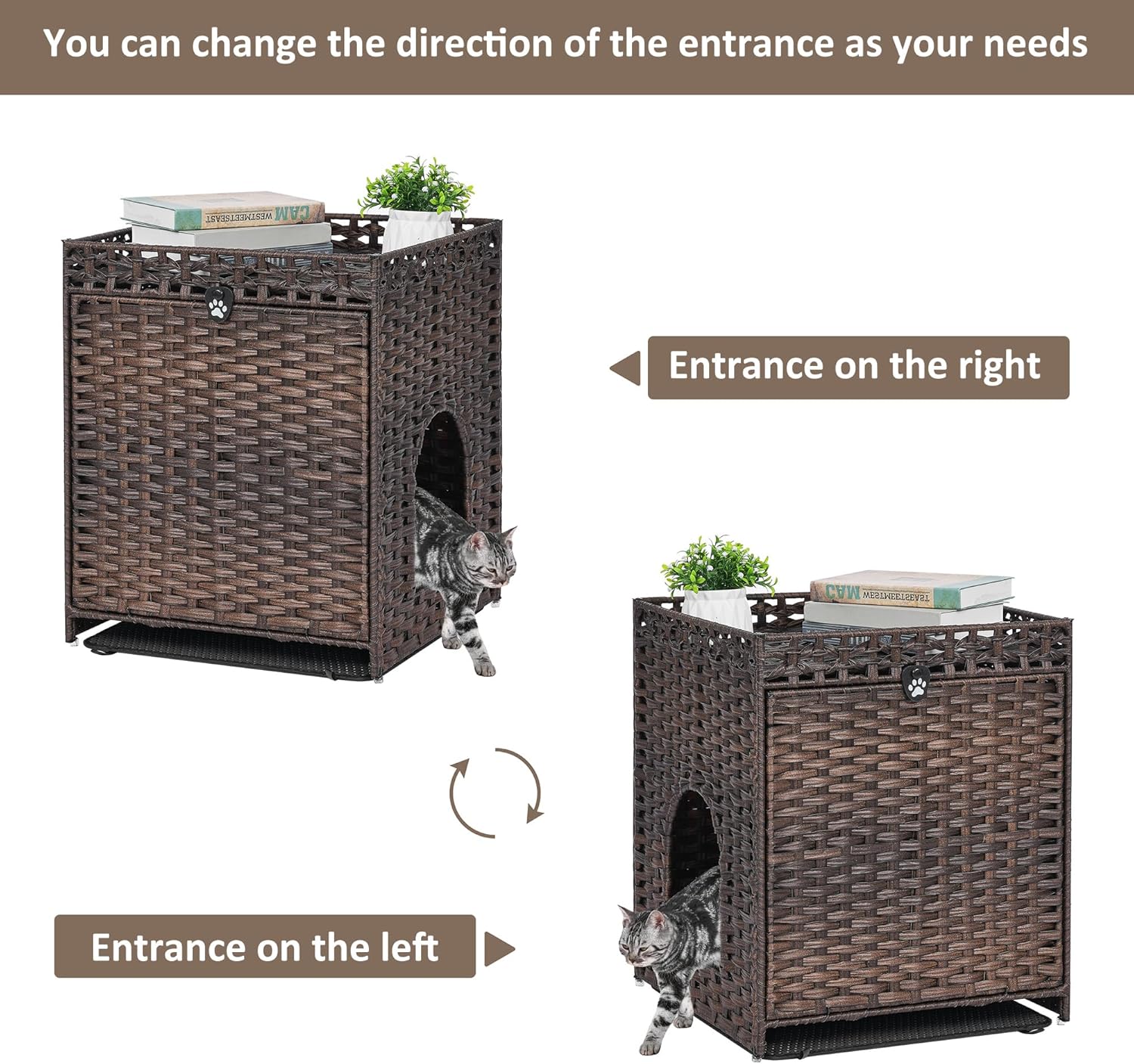 - 【Multi-functional cat house】This Bohemia style cat crate adds a warm and rustic element in the house. The hidden litter furniture is built with environmentally friendly rattan material, which is not afraid of sunlight and can be used on the balcony. You can add a cat bed inside for a cozy cat house, or top it off with lovely plants to enliven your home. In addition, it can be used as a nightstand or side table.