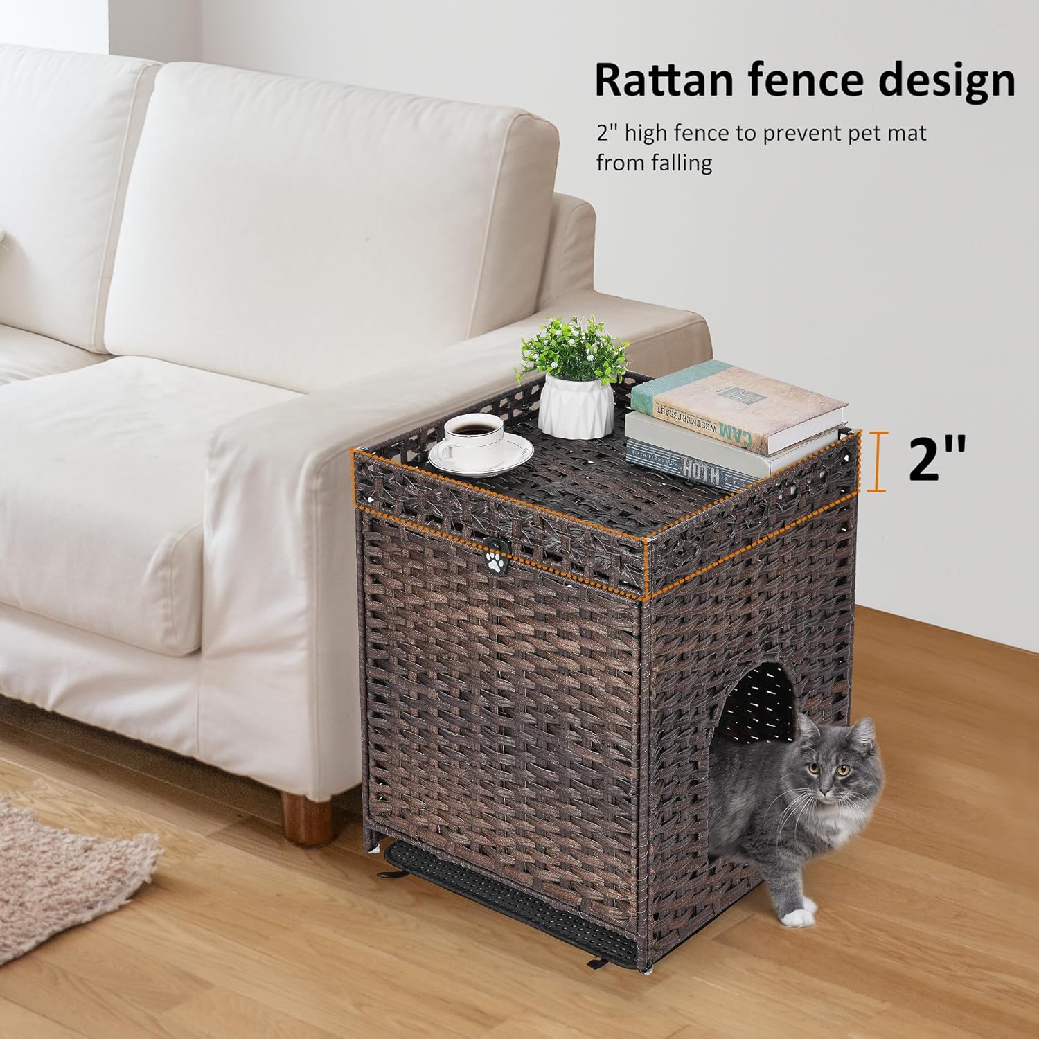- 【Spacious room, Top fence design】Inner dimensions: 17.5” x 29.4” x 18.5”, it suits most litter boxes. The cat house is built with top rattan fence (height 2''), which can prevent pet bed from falling.
