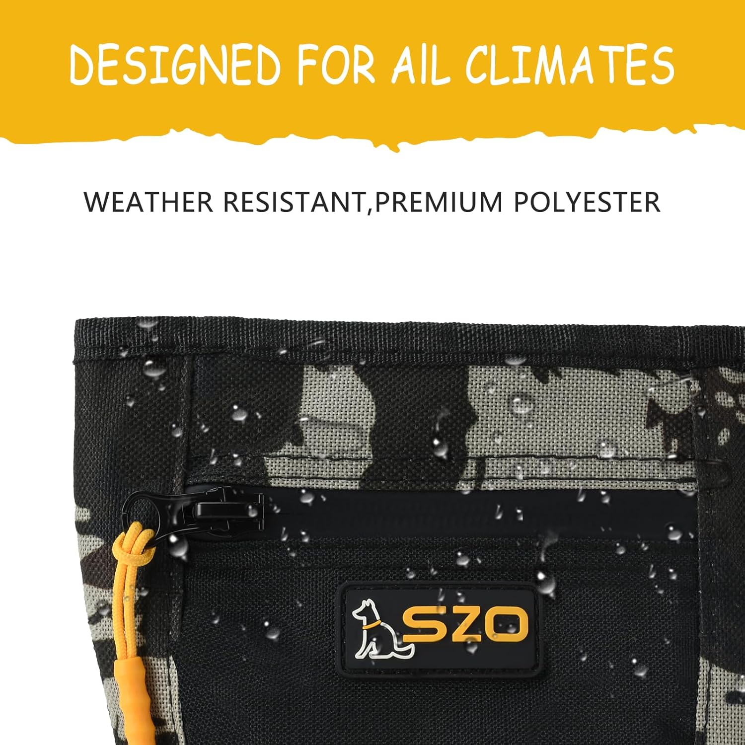 • Easy To Use — SZO dog treat pouch is designed to fit your everyday use when training your pets. It features a magnetic closure, allowing quick and one-handed access to your pet's favorite treats. And a front zipper pocket to secure personal items!