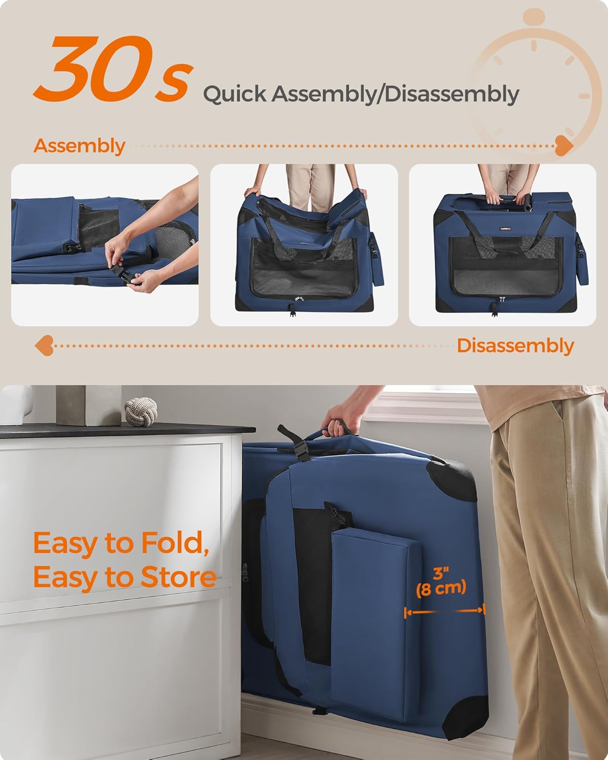 - 【ANTI-ESCAPE & STRONGER】Featuring self-locking zippers that ensure pets can't open it from the inside, the travel dog crate enhances safety while traveling. The thick steel frame and Oxford fabric are scratch- and tear-resistant for prolonged service life