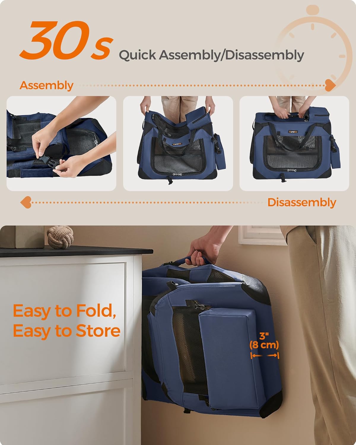 - 【ANTI-ESCAPE & STRONGER】Featuring self-locking zippers that ensure pets can't open it from the inside, the travel dog crate enhances safety while traveling. The thick steel frame and Oxford fabric are scratch- and tear-resistant for prolonged service life