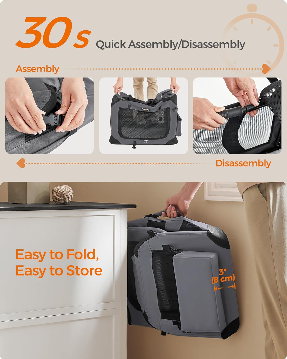 - 【ANTI-ESCAPE & STRONGER】Featuring self-locking zippers that ensure pets can't open it from the inside, the travel dog crate enhances safety while traveling. The thick steel frame and Oxford fabric are scratch- and tear-resistant for prolonged service life