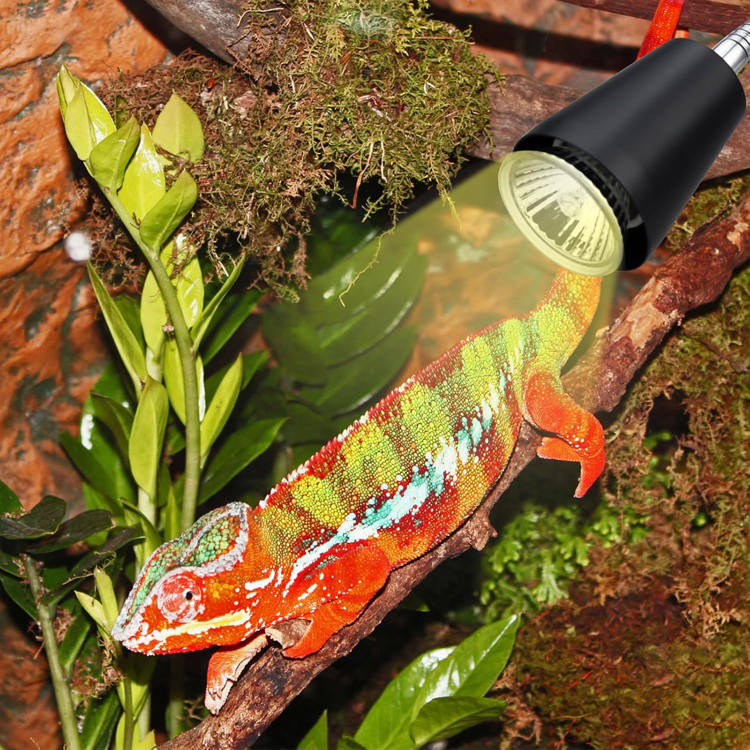 - UVA/UVB Light Bulb: The reptile heat lamp features two bulbs that emits both UVA and UVB light. This dual-function bulb provides the necessary ultraviolet rays that reptiles require for proper growth, calcium metabolism, and vitamin D synthesis. With this reptile heat lamp, you can provide a natural and balanced light spectrum to support your reptile's physiological needs.