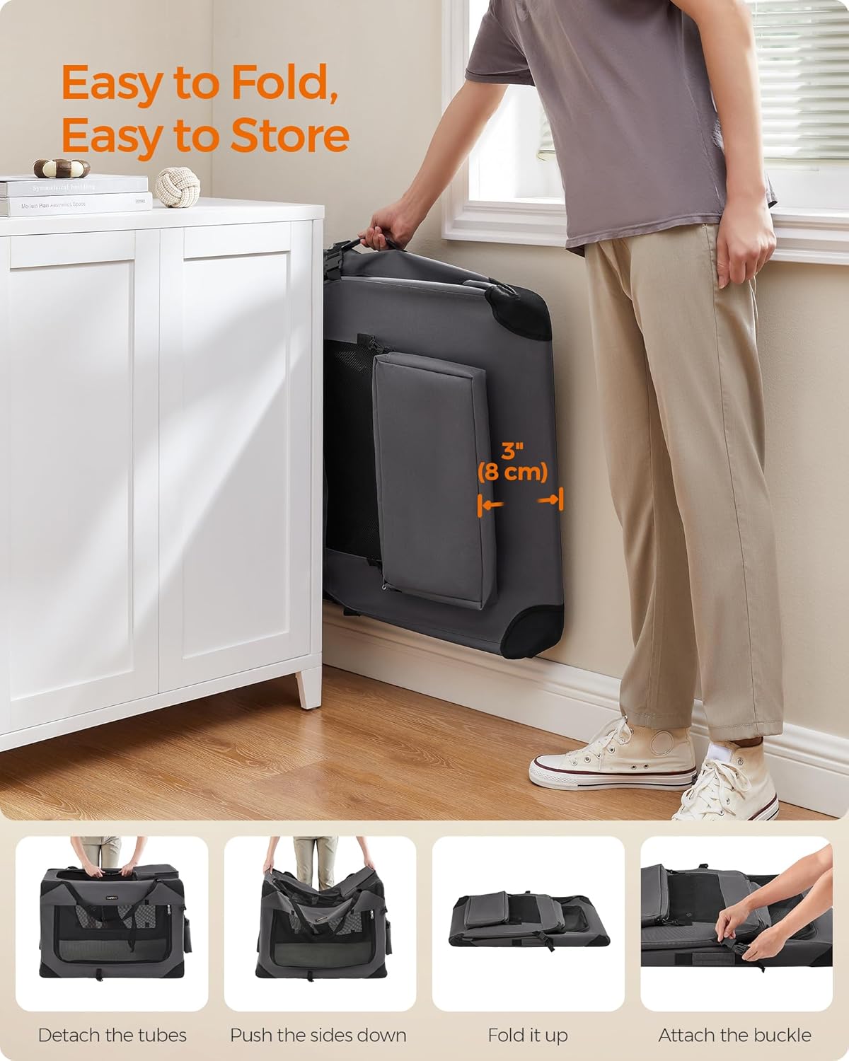 - 【ANTI-ESCAPE & STRONGER】Featuring self-locking zippers that ensure pets can't open it from the inside, the travel dog crate enhances safety while traveling. The thick steel frame and Oxford fabric are scratch- and tear-resistant for prolonged service life