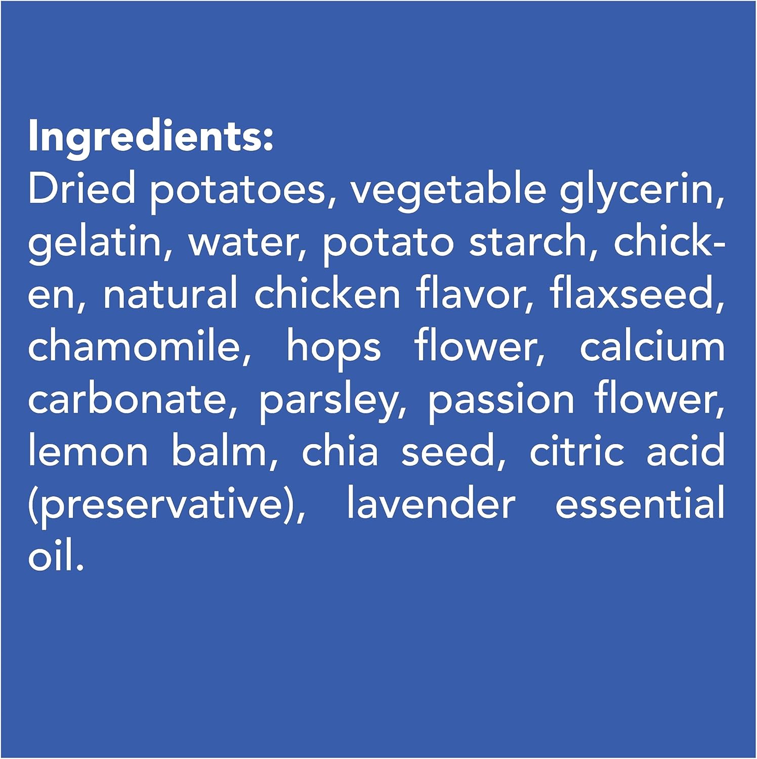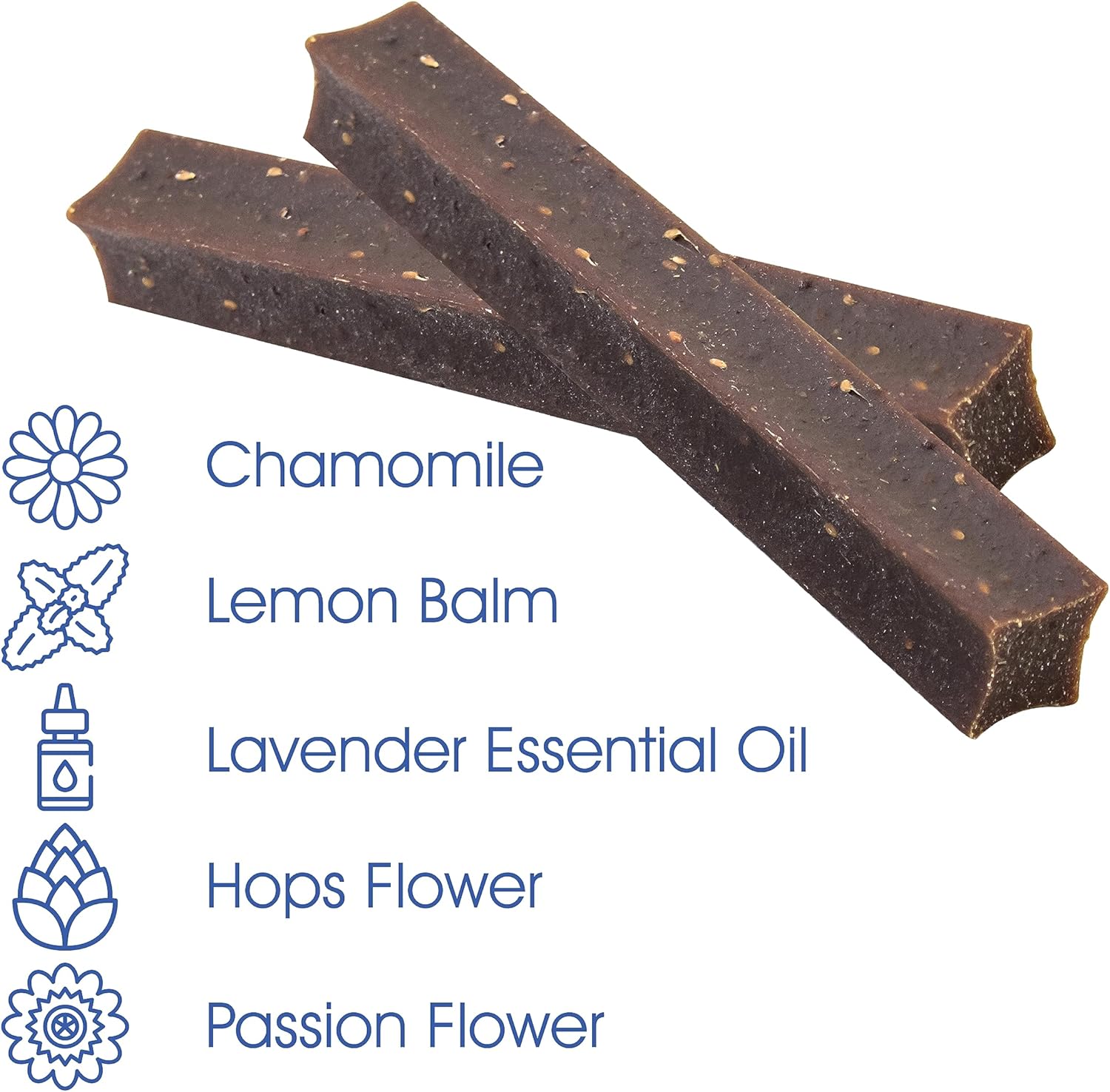• Calming + Dental Health: Firm yet chewable texture helps reduce plaque and tartar buildup—freshening breath while delivering soothing botanicals. It also does not contain melatonin for dogs to avoid morning droopiness.