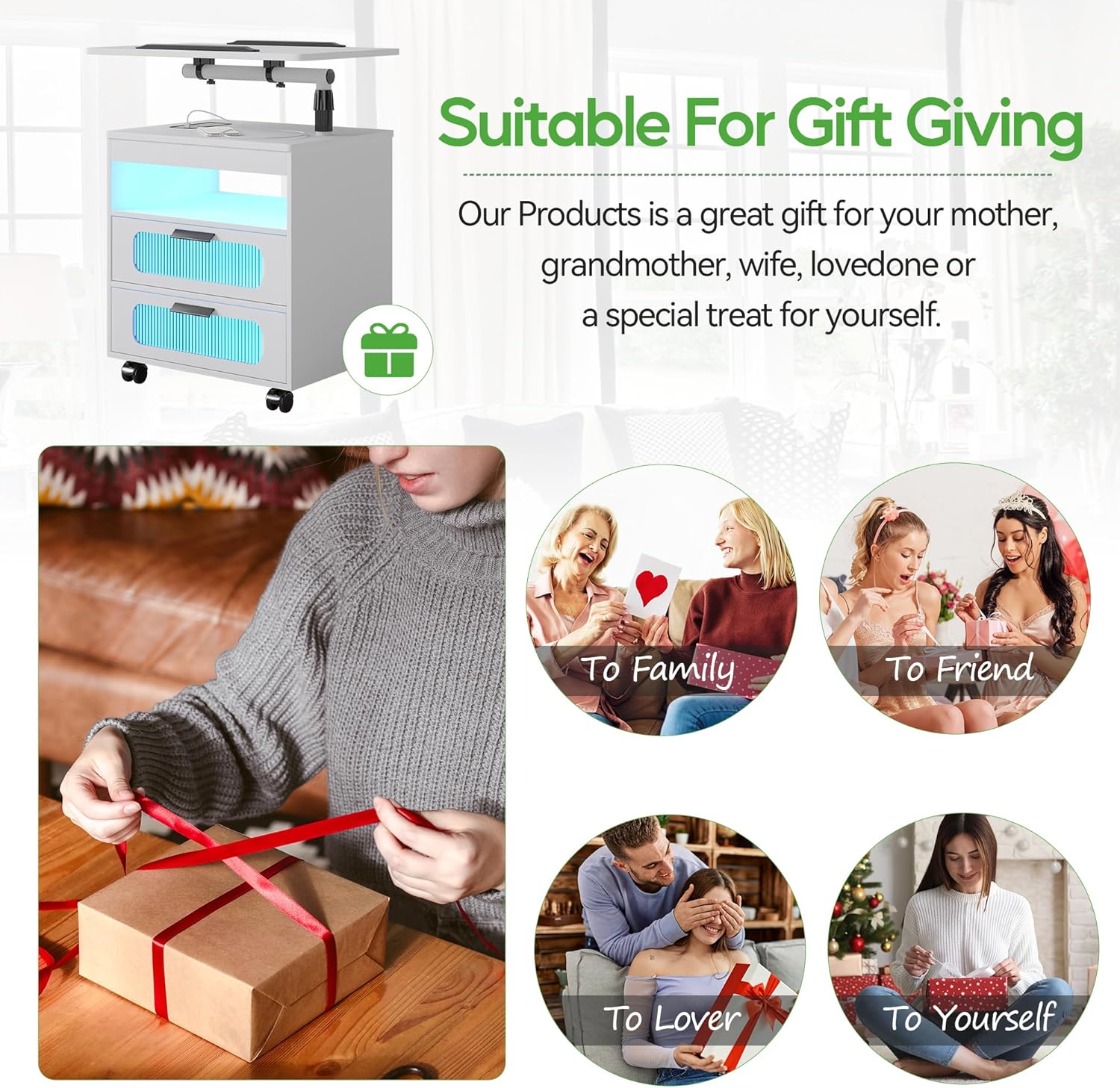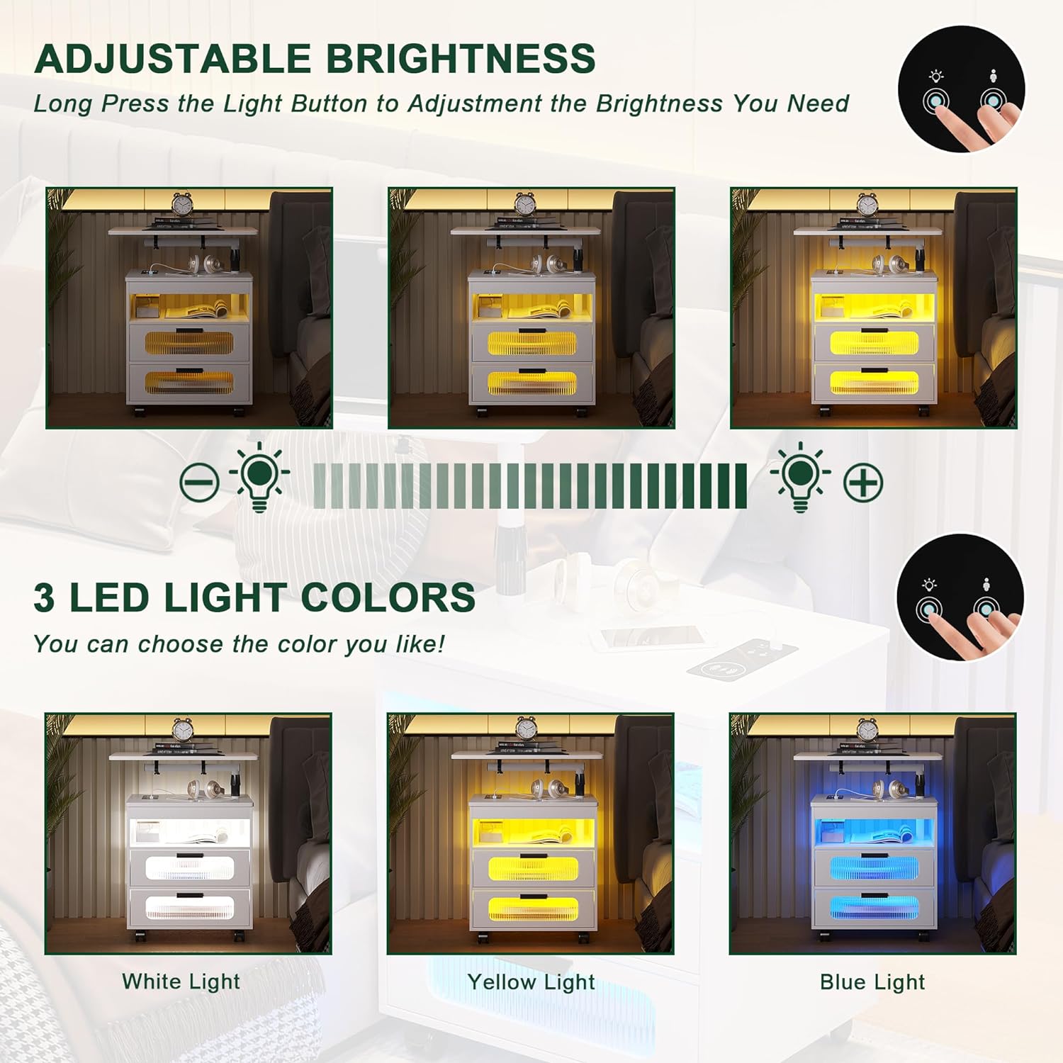 - ✅【Large Capacity Space】 The led nightstand provides spacious storage for nighttime essentials. There is a swivel desk; Open storage shelves; 2 drawers,The desktop can hold everyday items and keep them within reach.
