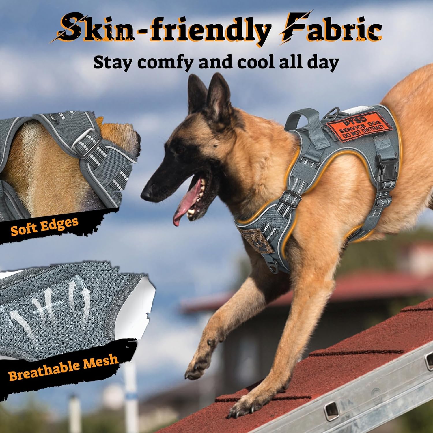 - No-Pull and Control: The harness has 19 leash attachment clips, including a metal front clip for no-pull running and a daily back clip for casual jogging. The large padded handle offers comfortable real-time control in an emergency
