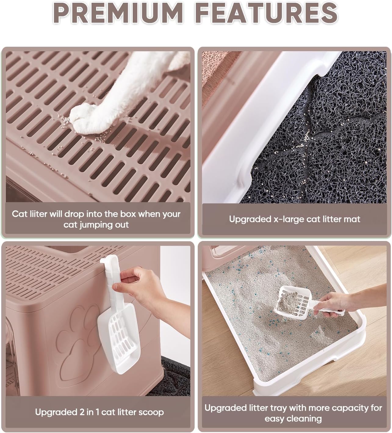 - [Pet Friendly Product] - The cat litter box with lid is made of stain resistant plastic. It can be flexibly folded and easy to clean, providing a neat living environment for your cat. The X-large litter mat is made of safe, high quality PVC material that is more friendly to your kitty
