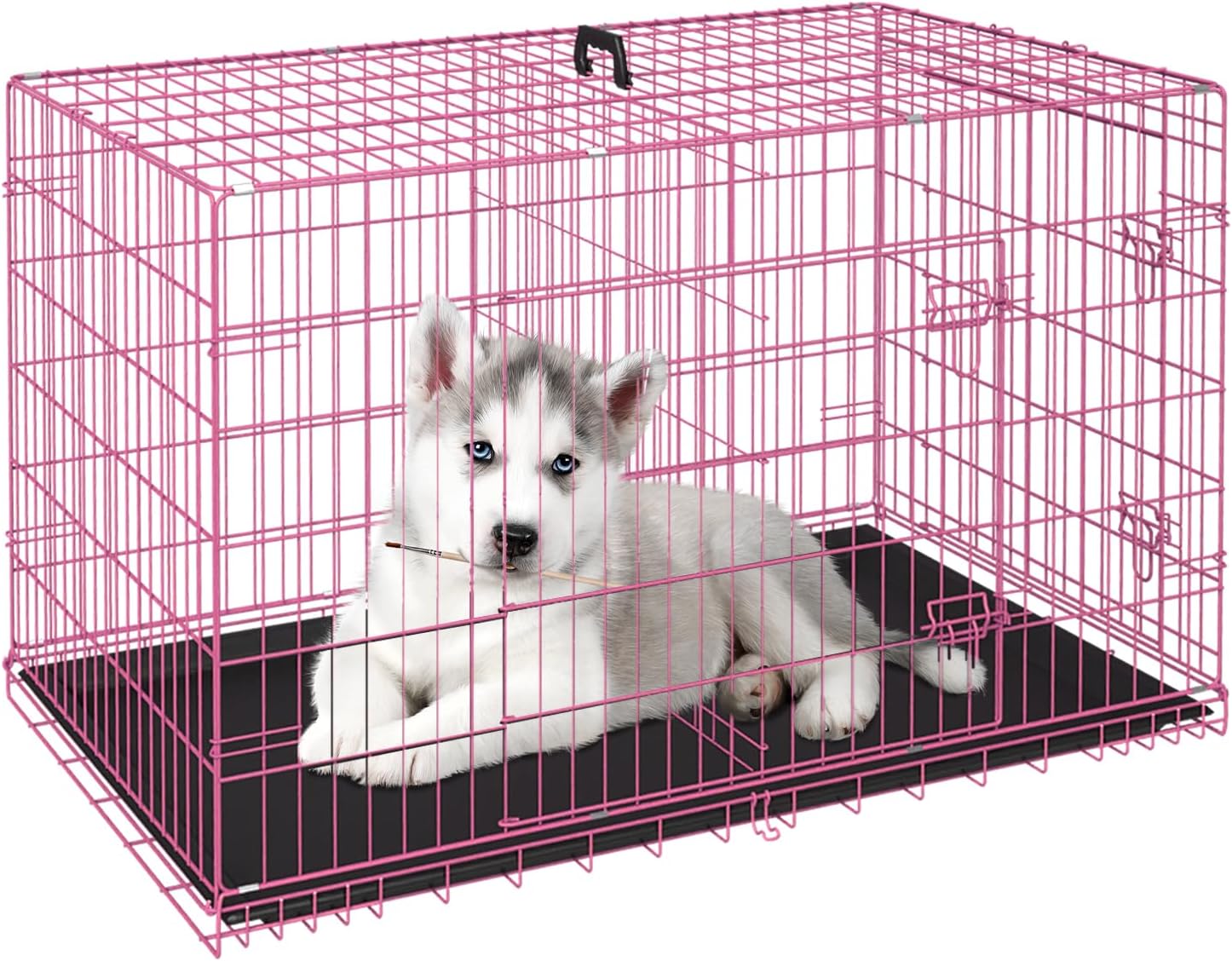 - 🐕【Designed to Safe and Comfortable】: The pet cage have two large doors, one on the front and one on the side, are easy to open, close.Heavy duty securely lock with dual latches, providing a safe and secure environment for your pet.The dog cage designed to keep animals safe and comfortable. Pet kennel wire dog crate animal cage.
