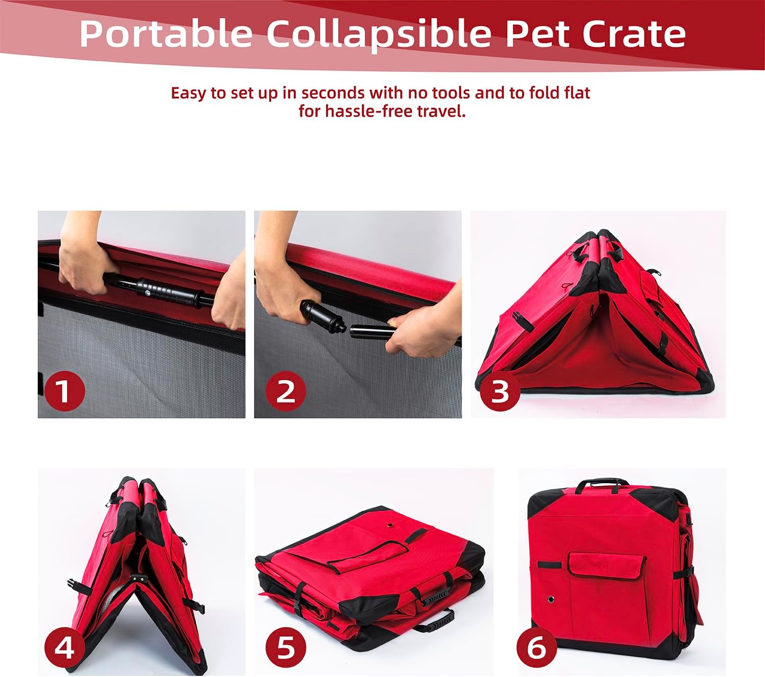 - 【Convenient Travel Experience】With its included carrying bag, this portable travel dog crate offers hassle-free transportation for trips to the park, vacations, camping or visits to family and friends.