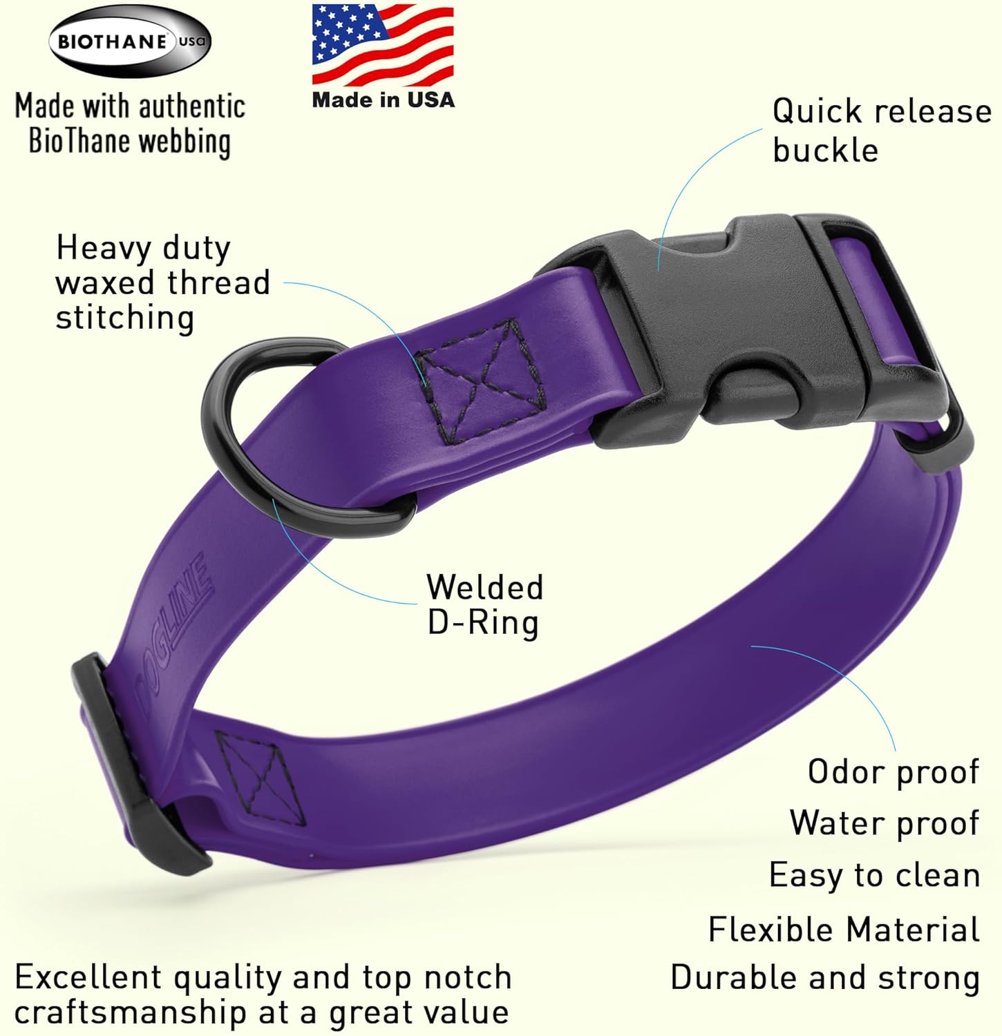 Dogline Biothane Waterproof Dog Collar with Quick Release Buckle Strong Coated Nylon Webbing with Odor- Proof for Easy Care Easy to Clean Fits Small Medium Large Dogs, Purple 3/4" W 12-19" L