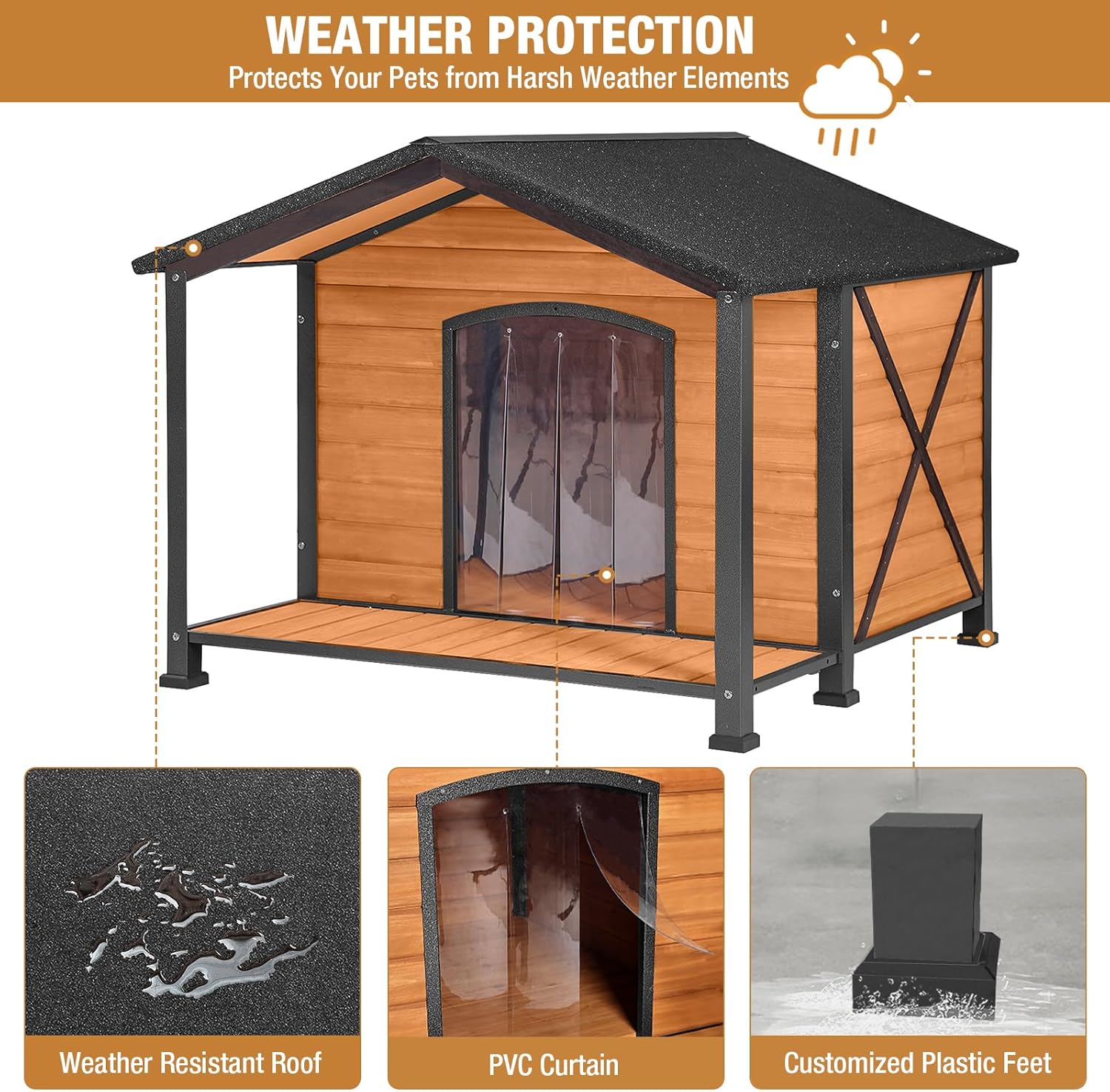 - 【Strong & Durable】Our dog house Combine with solid wood and UNIQUE all-around stronger iron frame, prevent destruction and chewing from animals. Anti a 180-pounds adult can easily sit on the platform.