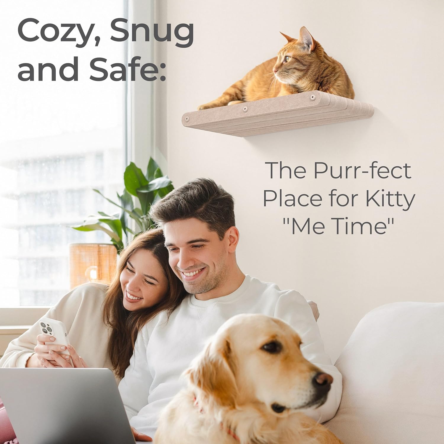 • Paws and Shine: Each cat shelf has a weather-proof design meaning you can expand your cat’s adventures outdoors, perfect for catios and secure areas. With our long cat wall shelf, your cat can scratch, snuggle and snooze anywhere.
