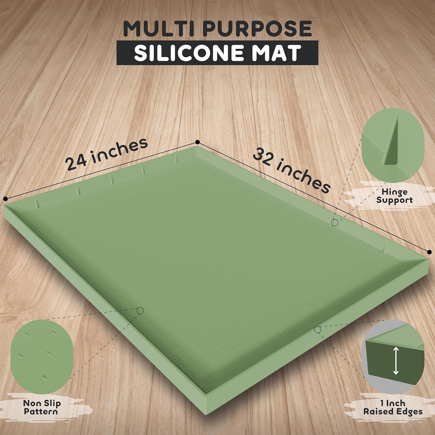 - RAISED EDGES KEEP THE MESSES WHERE IT BELONGS: Keep Your Home Spotless & Enjoy Hassle-Free Dinnertime with Your Furry Friend! Whether they eat with enthusiasm or like to play with their food, our 32"x24x1" dog food mats for floors waterproof are specially designed to reduce cleanup time for both wet and dry foods. Treat yourself and your furry pal to a cleaner, more enjoyable mealtime experience.