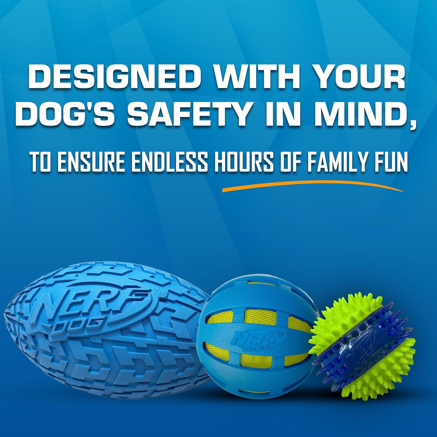 - Fetch Dog Toys: Three-piece Nerf Dog gift set, including Checker Crunch Ball, Spike LED Squeak Ball and Tire Squeak Football, ideal dog fetch toys for medium and large dogs