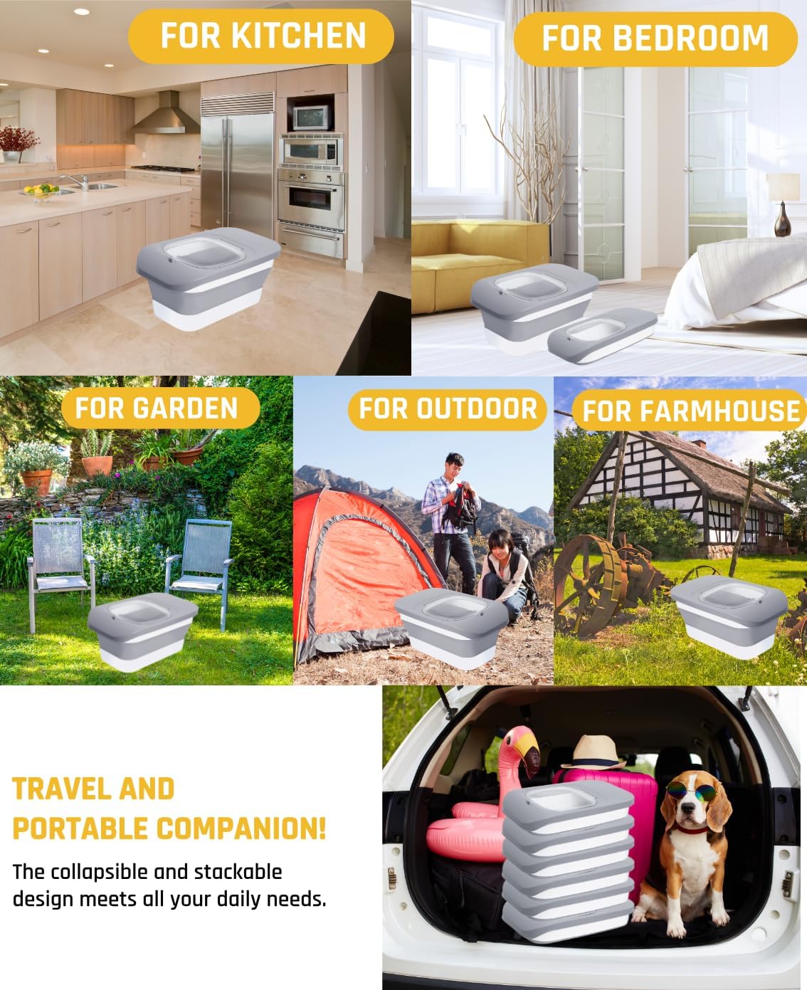 - WHAT YOU CAN GET: The dog food storage comes with1 dog food scoop and silicone collapsible dog bowl for easy serving.Support all the parts you need.And this thoughtful dog food travel container with a beautiful box is an ideal choice for any family.